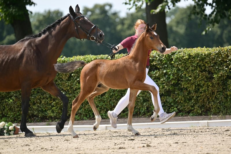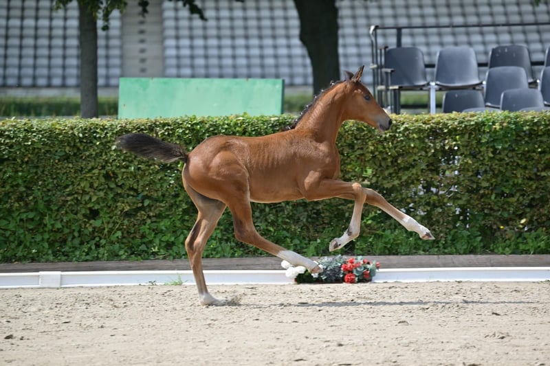 **Sales Advertisement: German Sport Horse** For sale is a promising colt from the first crop of Boccacio. **Features:** - Breed: German Sport Horse - Color: Bay - Year of Birth: 2025 This colt impresses with his excellent movements and balanced temperament. He is suitable for both dressage and breeding and already shows a lot of potential. Sire Boccacio (by Belantis II x Morricone I) was the champion stallion in 2024 in Neustadt Dosse and completed his HLP with a score of 8.44, placing him among the top group of the testing cohort. He is currently the DSP association champion for 4-year-old dressage horses as well as the DSP champion for riding horses - stallions. For more information or to schedule a viewing, please feel free to contact me. Contact me if you are interested!