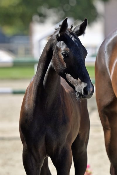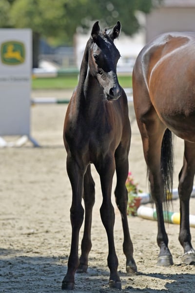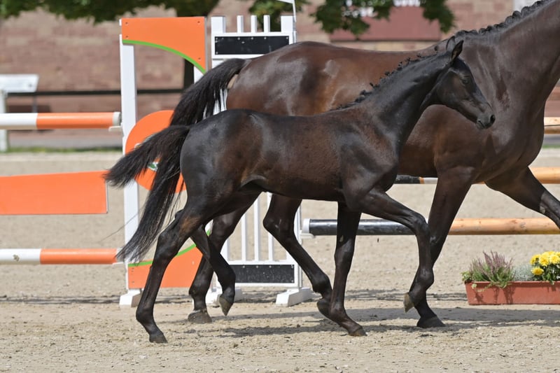 For sale: a very typey, elegant, long-legged colt with excellent movement. The foal was Reserve Champion Foal at the Foal Championship of Rhineland-Palatinate Saar. His sire, Corrinaro by Corrado II, has multiple placings in S-class show jumping competitions. His dam, Zyleia by Zinedream, is a candidate for the State Premium and descends from a Balou du Rouet mare who was placed up to M-level show jumping.