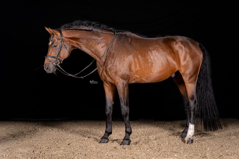 Characterful, expressive, and with an extraordinary presence. This 4-year-old licensed Oldenburg stallion by Escolar – Rohdiamant combines exceptional movement, natural balance, and a character that is hard to surpass. Under saddle, he proves to be focused, relaxed, and always eager to please the rider. Currently confidently competing at Medium level dressage, he already performs extended trot and walk-trot-canter transitions as part of his repertoire. He has also gained some initial competition experience and was awarded a ribbon on his debut. In daily handling, he presents himself as calm, friendly, and confident—non-estrus, always attentive and composed. He truly lives up to his nickname "Prince Charming": a horse that impresses with his honest nature, quality movement, and positive charisma. Bred from proven bloodlines, he exemplifies modern dressage horse breeding with a bright future. A current clinical and radiological pre-purchase examination without findings is available. We are happy to send a detailed video upon request. 📞 +49 (0) 152-22767768