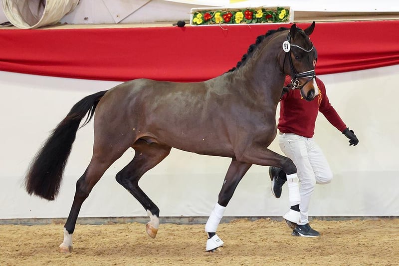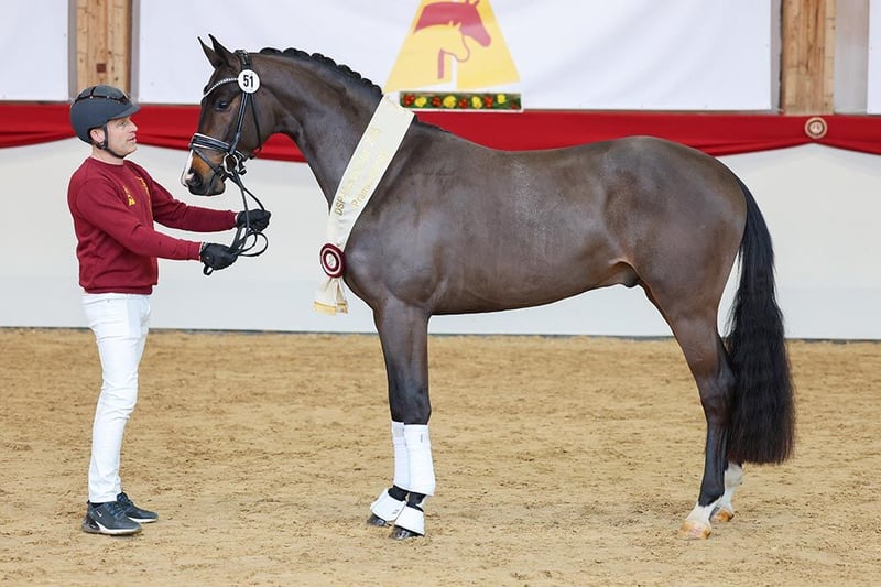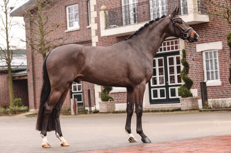 Donkey Amour impressed both the inspection committee and the knowledgeable audience at the DSP Stallion Days in Munich-Riem 2025. He was showcased as a radiant premium stallion. Dressage inspector Jörg Schröter aptly describes him: "We see here a particularly sympathetic and above all incredibly beautiful horse, a horse that impresses with its basic gaits, but especially with its very good temperament, its alert eye, and its calmness. A special aura combined with this powerful and springy trot has been very well received. The good work in the walk is noteworthy, particularly expansive, clearly in rhythm, with good forward and overreach. Here we see a truly consistently good horse with a special presence." Gerd Sosath is pleased with the new acquisition: "When I was at the inspection in Munich, this stallion captivated me from the very first day. Since we market the father Donkey Boy, I always had a special eye on him and was not disappointed. I was able to observe him live and was convinced by his three outstanding basic gaits and his sympathetic demeanor. His still youthful type offers a lot of potential for the future. The purchase of the premium stallion at the subsequent auction was the highlight of the weekend in the south. He will surely fit excellently with the mares of our breeders." Pedigree Father Donkey Boy was crowned "Stallion of the Year" in 2023 by the Danish Warmblood Breeding Association and won in Intermediaire II and Grand Prix under Anne-Mette Strandby Hansen in Skårup Fyn in 2022. He placed at the World Championships for Young Horses for three consecutive years and won the bronze medal in 2016 under his rider Jan Møller Christensen, as well as the silver medal in 2017. Furthermore, Christensen and Donkey Boy made history by winning the Danish Championships for Young Horses for four consecutive years (2016-2019). At his inspection in 2015, Donkey Boy was a premium stallion and won his stallion performance test in the following autumn. Donkey Amour's mother, Sonnenschein S, was herself successful up to S-level dressage and victorious in M**-dressage competitions. In combination with Floriscount, she produced Flashlight S, who is already successful in dressage horse competitions. Maternal grandfather San Amour was the main premium winner and is trained up to the advanced class. He has produced nearly 50 licensed sons. Over 40 of his descendants have reached Grand Prix level, including Honoré du Soir's sister Soiree d'Amour OLD. The third sire, Cabaret, has proven to be a versatile sire; Campari, for example, competed in dressage up to Intermediaire I, Catalina was successful in CCI3* events, and Casta Diva in 1.45m show jumping. There is also a connection to show jumping blood through the fourth dam Debuet (1.30m), as well as the fourth sire Campari M, who was successful in S-level show jumping.