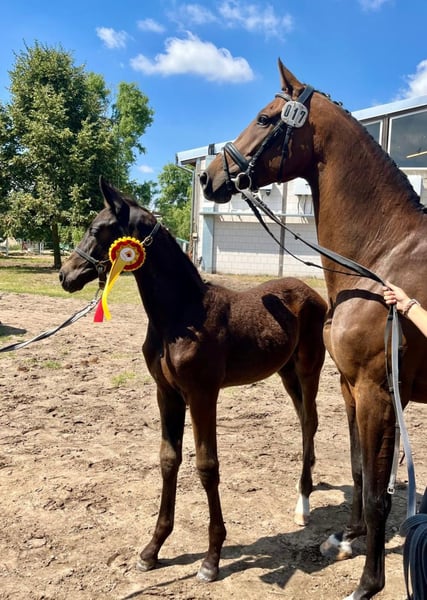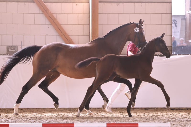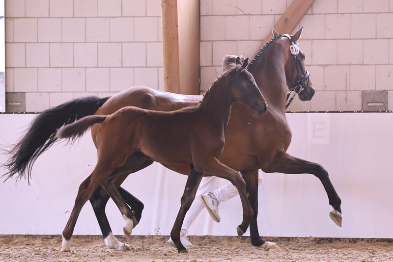 Dressurhengstfohlen Lindgren x Borsalino x Zonik x Diamond Hit Typvolles,schwarzbraunes Hengstfohlen von Lindgren(LeFormidable x Ampere) aud der Batida von Borsalino x Zonik x Diamant Hit am 18.04.2025 geboren sucht ab Ende Oktober ein schönes,neues zu Hause.Die Mutter von Batida ist Vollgeschwister zu Zonik Hit,der unter Lisa Müller erfolgreich im Grand Prix Sport unterwegs ist.Lorenzo bekam auf der Fohlenschau für den Typ die 8,5,Körperbau eine 8 und Bewegung eine 9 und ist damit ein Prämienfohlen und für das DSP Fohlenchampionat qualifiziert. Alle 3 Grundgangarten sind von guter bis sehr guter Qualität und zudem ist er korrekt und sehr dem Menschen zugewandt. Anfragen bitte direkt an Tel.: 01577/4305360