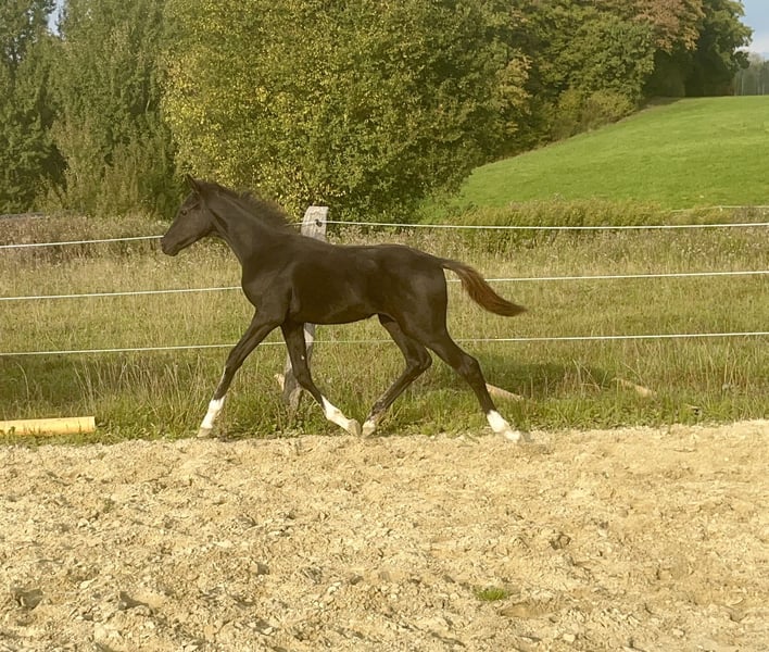 For sale is this exceptionally handsome colt by Global Dancer out of a Sir Heinrich x Fleurop mare. He impresses with correct conformation and build, excellent movement, and a friendly, eager-to-learn temperament. This black colt with white socks and a lovely blaze promises to be a highlight in any dressage competition and offers great potential for breeding. Galileo has learned the basics of foal training, has been regularly dewormed, and introduced to the farrier. The foal is available for viewing, and videos can be sent in advance upon request. Private sale, VAT free.