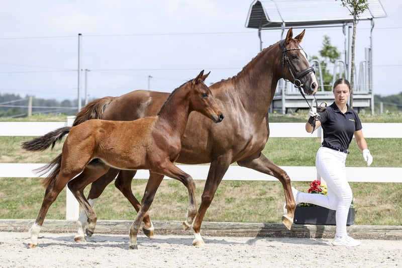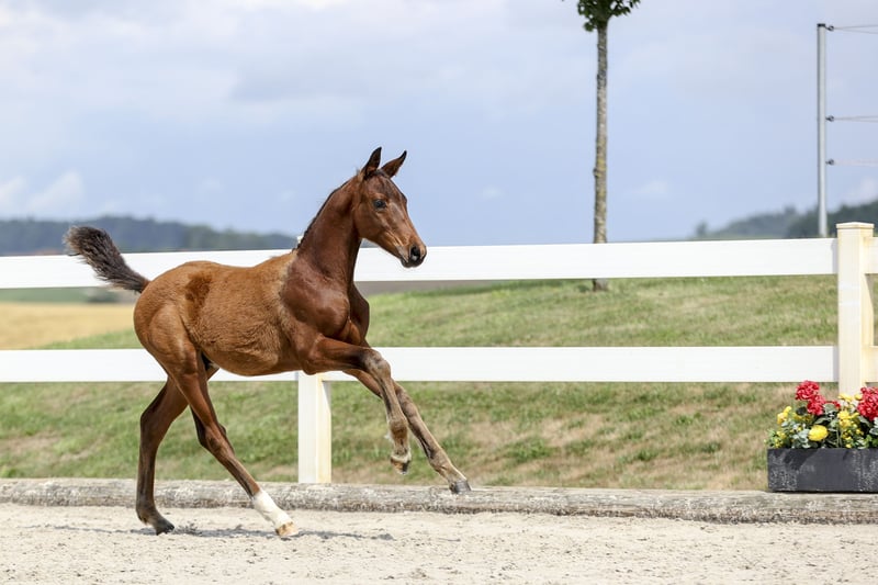 Zum Verkauf steht ein 2025 geborenes kompaktes, gut bemuskeltes Hengstfohlen mit drei schwungvollen Grundgangarten. Es kommt aus einem hervorragenden Stutenstamm über Belissimo - United - Gribaldi. Die Mutter selbst legte eine sehr gute Leistungsprüfung mit hoher Bewertung in Dressur und Springen ab ( Dressur 8,0; Springen 7,83 = Gesamtnote 7,91). Bei Interesse oder für weitere Informationen stehen wir Ihnen gerne zur Verfügung. Überzeugen Sie sich selbst von diesem tollen Fohlen!