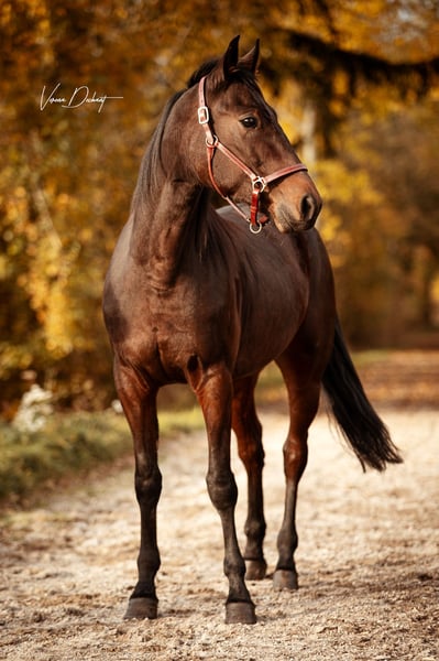 Beautiful 5-year-old trotter gelding for sale as a leisure horse. He has only been driven so far and has limited experience under saddle. Very well-behaved in handling, shoeing- and loading-friendly. Currently barefoot, but was previously shod. He is kept with a group of four geldings, is very social and herd-friendly. Naturally, he is regularly vaccinated and dewormed. Perfect for someone looking for a leisure partner to train and develop themselves.