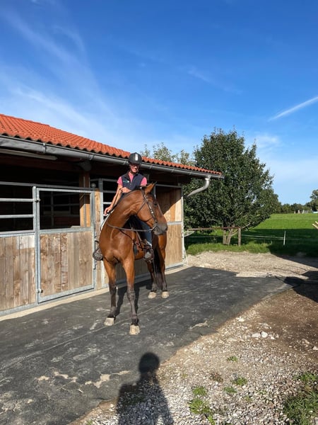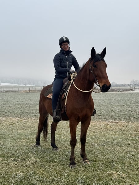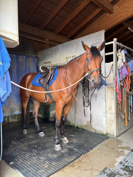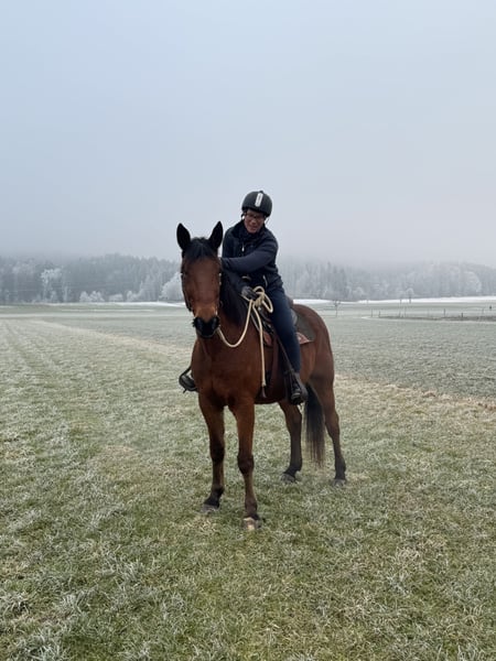 Ich heiße Sancho, Bin ein kompakter, verschmuster Traberwallach. Ich suche meinen Partner, der es liebt mit mir lange Geländeausritte oder Fahren zu erleben. Ich bin mit meiner Reiterin stundenlange Ausritte gewöhnt und genieße es einfach gemütlich unterwegs zu sein. Ich liebe die Bodenarbeit auch sehr, nur das Reiten im Viereck ist mit oft zu langweilig, kenne ich aber auch. Ich kann mittlerweile alle drei Grundgangarten, bin Englisch und Western/Freizeit geritten. Ich bin kerngesund. Bin aus dem Sport gegangen, weil es mir zu schwer wurde. Bin auf allen vieren beschlagen. Bin auch im Umgang sehr unkompliziert und nervenstark. In der Herde rangmittig. Stehe derzeit mit meinen Freunden im Offenstall. Geimpft und gechipt. Keine Händler und Reitschulen. Probereiten kostet 30€. Ich freue mich sehr auf euer Kennenlernen, Euer Sancho.