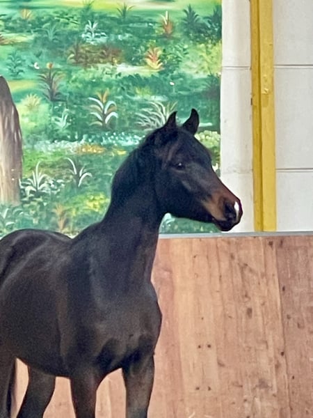 Deze zeer typvolle 2-jarige hengst van Zauberlehrling PS komt uit een even zo typvolle merrie van For Romance - Lord Loxley. Hij beweegt in alle gangen gelijkmatig, lichtvoetig en goed. De moeder zelf beschikt over een geweldige rijbaarheid en een uitstekend karakter; dit zijn absolute droompaarden voor iedere amateurruiter. Een zeer aanhankelijk en open paard dat probleemloos in een groep kan worden geïntegreerd. Hij krijgt uitstekende opfokomstandigheden en is tot nu toe niet ziek geweest. Ik sta graag klaar voor meer informatie. Neem gerust contact met mij op via WhatsApp op +49 151 19526002. Stefanie Steinhauf Gestüt Babiacki