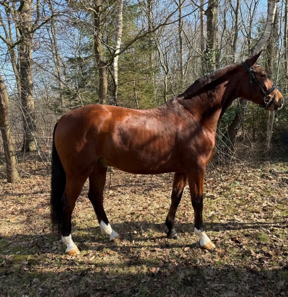 Hannoverian Gelding – Promising Youngster for Dressage This charming bay Hannoverian gelding was foaled in 2022 and impresses with his promising pedigree and noble appearance. Standing at 16.1 hh, he offers the ideal size for ambitious riders who value quality and potential. The young gelding is already well accustomed to handling and exhibits a very friendly and eager-to-learn demeanor. His typical elegance and pronounced movement talent make him a promising dressage prospect for advanced amateurs or competitive riding. His solid basic training has been carefully developed, and he already shows initial promising strides in dressage work. With his harmonious movement and pleasant character, he is a reliable partner ideally suited for building a successful dressage career. A horse with great development potential, convincing through both his quality and friendly nature. For further information and a personal impression, I am happy to be at your disposal.