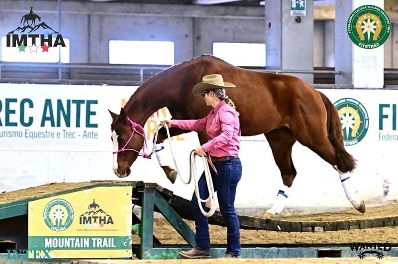 8-jähriger Fuchswallach, mit zwei Jahren Erfahrung bei Mountain Trail Shows und allgemeinem Ranch-Disziplinentraining. Er wurde im Einhand-Gang ausgebildet, verfügt über ein hohes Ausbildungsniveau und sehr gute Erfahrung sowohl in der Halle als auch im Gelände, auch im Trail Riding. Das Pferd ist regionaler Reserve-Champion und italienischer Reserve-Champion im Mountain Trail in Italien. Es wurde von meiner Familie gezüchtet und in meinem Stall ausgebildet, ohne Einbindung weiterer Besitzer. Das Pferd ist süß und liebenswert, benötigt jedoch einen erfahrenen Reiter in Western-Disziplinen. Ideal für Jugendliche oder Nicht-Profis. Aufgrund seiner Größe wäre eine Frau am besten geeignet. Er ist ein direkter Neffe von SPAT OLENA (über die Mutter) und ARC PLAY WITH PRICES (über den Vater), außerdem war seine Großmutter Ltd Open Champion beim Reining Derby in den USA. Es handelt sich um einen Cross aus Cutting und Reining.