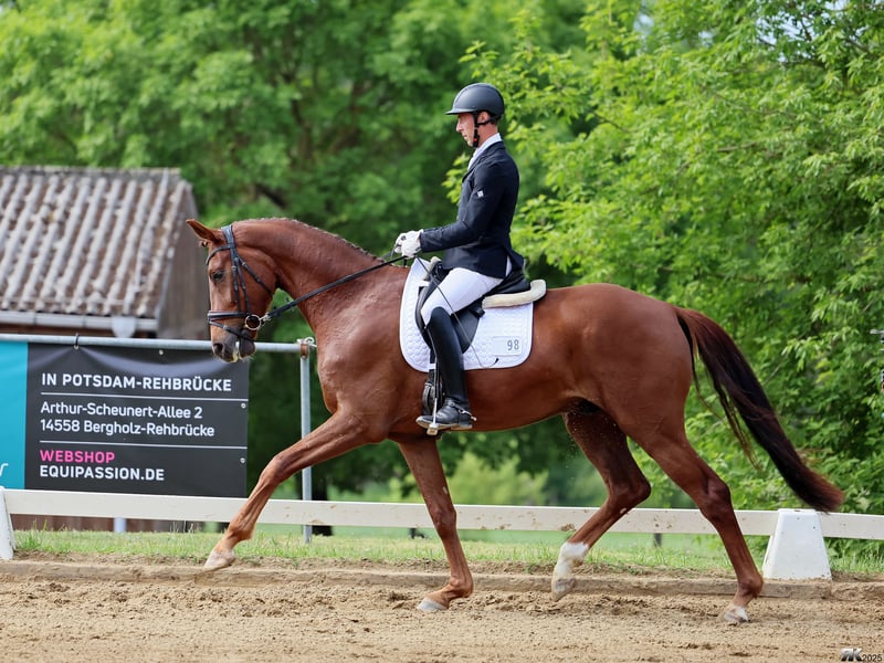 Dieser wunderschöne 4-jährige Wallach überzeugt nicht nur mit herausragendem Charakter, sondern auch mit hervorragenden Grundgangarten und einer besonders angenehmen Rittigkeit. Gezogen ist er über Bon Courage – For Romance I – Dormello und vereint damit allerbeste Dressurblutlinien! Brazil von Carlsdorf ist ein echtes Herzenspferd. Er verfügt über eine große Leistungsbereitschaft und ist absolut unkompliziert im täglichen Umgang sowie unter dem Sattel. Seine Rittigkeit und seine Lernfreude machen ihn zu einem idealen Partner sowohl für ambitionierte Amateure als auch für Profis mit Blick auf eine sportliche Zukunft. - Gewinner des Havelländer Freilaufwettbewerbs der 4-jährigen Dressurpferde 2025 - Reitpferdeprüfungen gewonnen und platziert