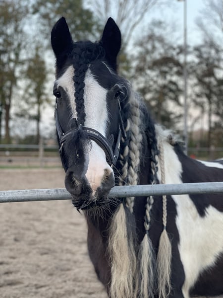 Te koop: - Eerlijk paardenhart in een krachtig Tinker‑lijf Met pijn in mijn hart verkoop ik mijn maatje om medische redenen. Storm is een indrukwekkende 15‑jarige Irish Cob (Tinker) met een bijzonder karakter. Geen paard dat je “even koopt”, maar een maatje waar je echt een band mee opbouwt. Hij is allround inzetbaar en houdt van afwisseling. Lange buitenritten zijn favoriet en hij is daarbij bomproof in verkeer en onbekende situaties. Bakwerk vindt hij minder leuk, maar een keer gas geven of een sprongetje maken doet hij met enthousiasme. Storm heeft ruime ervaring met mennen, clickertraining en targettraining en is daardoor slim, leergierig en mentaal sterk. ❗ Belangrijk Storm is een paard met gevoel en heeft een ervaren, evenwichtige ruiter nodig. Hij is een echte spiegel. Ben je duidelijk en in balans, dan krijg je alles van hem terug. Heeft hij vertrouwen in je, dan gaat hij voor je door het vuur. In de omgang is Storm een fijne, betrouwbare ruin met typisch Tinker‑karakter: rustig, nuchter en prettig in de dagelijkse handling. Geen stalgebreken. Gegevens Naam: Storm Ras: Irish Cob (Tinker) Geslacht: Ruin Leeftijd: 15 jaar Stokmaat: ± 1.48 m (breed gebouwd, oogt groter) Gezondheid & verzorging Gekeurd bij aankoop (september 2021) Opnieuw keuren toegestaan, kosten koper PSSM1 en lichte CPL, beide volledig onder controle met suikerarm dieet Verder klinisch in orde Geen stalgebreken Elke 7 weken bekapt, sterke hoeven Jaarlijks tandarts en kokerreiniging Entingen up‑to‑date Geschikt voor Volwassen, ervaren ruiter Recreatief rijden met veelzijdigheid Buitenritten, voor de kar en grondwerk Een fijn maatje voor de lange termijn Handelaren en maneges hoeven niet te reageren. 💶 Vraagprijs: €5.000,- Prijs bespreekbaar bij een goede klik en passend thuis. Alle spullen mogen mee (zadel, hoofdstel, dekens e.d.). Mentuig tegen meerprijs. hij gaat niet zomaar weg; een goed en blijvend thuis is het allerbelangrijkst