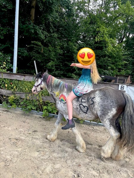 Kleiner Tinker mit ganz großem Herz sucht sein neues Zuhause. Keks ist ein intelligenter, freundlicher und charmanter Wallach welcher Artgerecht und Sorgenfrei auf der Wiese aufgewachsen ist. Eckdaten: Keks Wallach Blue Bladgon *31.05.2022 Barhuf Aktuelles Stockmaß 1,28m (Endmaß geschätzt 1,34) Regelmäßig entwurmt und geimpft Grüner Pass Ende August wurden Zähne und Hufe gemacht Osteopath hatte auch draufgeschaut Schmiedefromm Verladefromm Longiert Angeritten Geht allein und in der Gruppe ins Gelände eher Rangniedrig Keine Unarten Kennt Kinder, Hunde, Wasser, laute Musik, Straßenverkehr und alles was man auf einem Bauernhof und im Dorf kennenlernen kann Lässt sich eindecken und einsprühen Im Frühjahr haben wir angefangen mit ihm zu arbeiten. Dabei zeigt er sich lernwillig und engagiert. Er reagiert fein auf Stimme und Körpersprache und ist bereits im Schritt und Trab reitbar. Im Gelände zeigt er sich unerschrocken und motiviert. Altersbedingt ist er bisher nur gebisslos geritten. Springt gerne und zeigt dabei Talent. Altersbedingt ist er noch recht unausbalanciert, weswegen er den Sommer nochmal auf der Koppel verbringen darf. Er würde sich auch als Fahrpony oder zum therapeutischen Reiten eignet. Täglichen Umgang mit Kindern ist er gewohnt. Er hat keine Probleme mit Mauke oder Raspe. Kennt Box, Offenstall und 24/7 Koppel. Fühlt sich am wohlsten im Offenstall. Er hat kein Problem damit, allein „zurückzubleiben“. Putzsachen und seinen Kappzaum/ Trense von Hillbury bringt er mit ins neue Zuhause. Wir wünschen uns für ihn ein artgerechtes Zuhause mit Familienanschluss, Wertschätzung und Liebe zum Pony und nicht nur zum reiten. Einfach melden, fragen stellen, kennenlernen und vorbeikommen! Videos und mehr Bilder können versendet werden. Platz vor Preis.