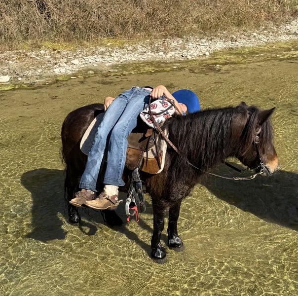 🎁 𝐈𝐍 𝐓𝐈𝐌𝐄 𝐅𝐎𝐑 𝑪𝒉𝒓𝒊𝒔𝒕𝒎𝒂𝒔 🎁 Happening now thru TUESDAY | DECEMBER 9th - Available EXCLUSIVELY on Ponybid's website! For more details and to register visit: www.Ponybid.com CONSIGNOR CONTACT: JP Performance Horses 817-901-6596 LOCATION: Weatherford, Texas BREED: Mini Gypsy Cross REGISTERED: No REGISTERED NAME: Finn COLOR: Bay HEIGHT: 42 inches AGE: 4 GENDER: Gelding Meet Finn – The Perfect Mini Gypsy Cross Pony 🌟 There isn’t a pony any cuter than Finn! This sweet mini Gypsy cross stands 42 inches and is as wide as he is tall—built perfectly for little riders. He’s just 4 years old, but his calm, sensible personality makes him act much older than his age. Finn is a gentle, puppy-dog type who loves kids and thrives on attention and brushing. He rides and drives, and being raised in the Amish community, he’s been exposed to all kinds of sights and sounds around the farm. He’s unflappable and loves adventures—whether it’s trail riding, walking through town, or splashing in the water. Nothing spooks him! He has excellent feet, stands for the farrier, loads and unloads easily, and comes with a current Coggins. Finn doesn’t have a mean bone in his body—he’s the kind of pony that wins the hearts of everyone he meets. With his little doll head, feathered feet, and beautiful body, Finn is every child’s dream pony. He will fit perfectly under the Christmas tree, and we will gladly hold him until Christmas. Shipping can also be arranged. Finn is truly special and ready to bring joy and love to his next lucky family. Feel free to reach out to Jackie with JP Performance Horses at 817-901-6596 visit, schedule a visit or FaceTime call.