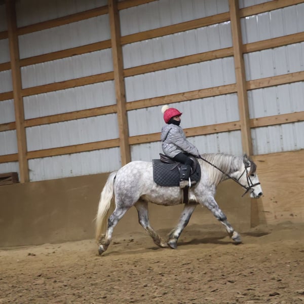 🎄𝐓𝐇𝐄 𝑯𝒐𝒍𝒊𝒅𝒂𝒚 𝐂𝐋𝐀𝐒𝐒𝐈𝐂🎄 Happening now thru MONDAY | DECEMBER 15th - Available EXCLUSIVELY on HorseBid's website! For more details and to register visit: www.Horsebid.com CONSIGNOR CONTACT: Blackstone Stables 248-390-6831 LOCATION: Howell MI BREED: Miniature Gypsy Vanner REGISTERED: Yes REGISTERED NAME: Good Time Boy Hugo COLOR: Dapple Grey HEIGHT: 12.2 AGE: 3 GENDER: Gelding Good Time Boy Hugo or "Sonic" as we call him at home is proudly being offered for sale! Sonic is a registered with the Gypsy Sport Pony registry. He is out of a miniature mare and by a gypsy vanner stallion. He is a stunning dappled grey who stands a sturdy 12.2hh. Sonic is kid tested, mom and grandma approved. This little guy has all the training of a big horse. Sonic has had 4 and 7 year old kids work extensively with him. He’s seen many miles out on the trails both being ponied and ridden solo by kids. Deep Woods, water, wild life, open rolling fields are no issue for Sonic. He has been exposed to cattle and has helped dad round up the cows. In the arena this guy walk, trot, canters and has flying lead changes!! He will move on and off of leg pressure too. He Carrie's a nice pace with minimal effort from his rider. Sonic has also been used for jumping and I must say he dose so in adorable form. He will jump full courses with nearly auto changes and will jump from any distance his rider puts him in. He has done obstacle courses and will cross bridges and pool noodles without batting an eye. Sonic has been in parades, and taken out trick or treating. He has been shown in hand and under-saddle. This little guy comes with incredible training and experience. You will wear out the tires on your truck trying to find a similar pony. He is absolutely a puppy dog for the kids to handle. He’s been in the house, groomed for hours on end and will cuddle up with your kids as they read him stories or just play with him. He knows how to sit and lay on command. He has A+ manners as well. The kids fight over who gets to ride him, Sonic has no issues giving all the kids a chance. This pony can take your kiddo from lead line to independently cantering and even jumping. Sonic is also started in harness. He has stolen the heart of all of our kids! Please enjoy the video. Sonic lives in Howell, MI 48855 Call or text Ellesse Schwartz at 248-390-6831 for more information.