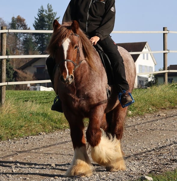 JJ ist ein lieber, eher gemütlicher Wallach, Stm. ca. 144 cm, 4,5-jährig Er wird bei uns regelmässig im Gelände Geritten.