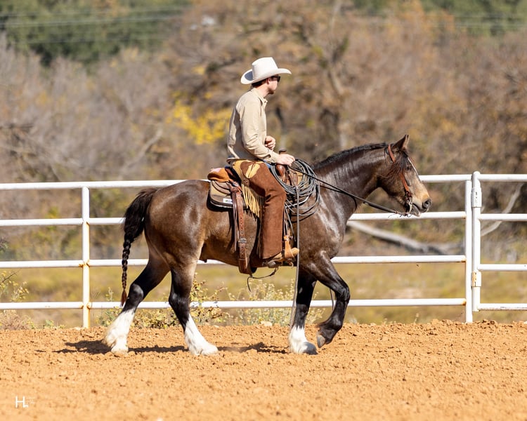 🎄𝐓𝐇𝐄 𝑯𝒐𝒍𝒊𝒅𝒂𝒚 𝐂𝐋𝐀𝐒𝐒𝐈𝐂🎄 Happening now thru MONDAY | DECEMBER 15th - Available EXCLUSIVELY on HorseBid's website! For more details and to register visit: www.Horsebid.com CONSIGNOR CONTACT: H Spur Performance & Versatility Horses 817-366-6123 LOCATION: Weatherford, TX BREED: Gypsy Cross REGISTERED: No COLOR: Buckskin HEIGHT: 14.3 AGE: 4 GENDER: Gelding Ozzy is a 4yr old, 14.3hh, sooty buckskin Gypsy cross gelding with the kind of presence that grabs your attention from the start. If his good looks don’t get ya hooked, his personality and rideability definitely will. From the arena to the trails, this gelding has you covered and would be an exceptional prospect to show in all ranch versatility classes or under english tack. Ozzy has been ridden through state parks, used on overnight camping trips, and used for basic ranch work making circles and gathering. He’s traveled through multiple trail courses and handled every obstacle with ease — water, bridges, logs, brush, teeter totters, you name it. He also handles new environments confidently, taking everything in stride. Ozzy goes through water easily and is steady around activity and commotion. We have shot firearms around him and he handled it extremely well, never getting bothered or reactive. He also handles vehicle traffic well and makes a gorgeous flag horse, carrying himself with confidence and style. In the arena, Ozzy is a fun and fancy ride. He has a light handle, bridles up well, is started on flying lead changes, and will absolutely drag his hind end when asked to stop. He’s been used as a turnback horse in the cutting pen as well and will really cow up to one. Ozzy has also been ridden English and took to it like a duck to water, showing just how versatile he wants to be. Ozzy is very fluid and smooth in all gaits, making him a comfortable and enjoyable horse to ride for long stretches. If rideability is just as important as personality to you, he'll surely win you over on the ground too. Ozzy has a super sweet personality — he loves his scratches, loves to give kisses, and truly enjoys being around people. He absolutely adores kids and is patient and kind with them. He’s great with pesky dogs and other farm animals/livestock, and he loads, unloads, and hauls like a pro. Ozzy is easy to get along with on the ground for all. He has always been a gentleman for grooming, stands tied or ground ties to be saddled, and takes a bit easily. He can be lead, as well as loaded onto the trailer by our 4yr old son with no issues no matter where we are. Ozzy can go barefoot with no issues and has been barefoot with us, but currently has a full set on as personal preference for sale horses. If you’re looking for a young gelding with standout looks, a kind personality, and a solid, honest foundation ready to finish your way, Ozzy is your guy. He is completely sound with no blemishes of any kind, has no history of sickness or injury, and is ready to go in whichever direction you point him. As everyone is aware, the EHV outbreak in Texas has slightly thrown a wrench into the normal dealings. Our main transporters have paused hauls, but we will be offering free board until transport can be arranged from our place in Weatherford, TX to a buyer’s home. Our facility has been free of any potential outside exposure since early October. Please visit our Facebook page, H Spur Performance & Versatility Horses, to see all updates and information pertaining to such. Ozzy will sell with a temperature log to ease potential buyers minds as well and is UTD on all routine care. To view Ozzy’s full picture and video gallery, you can visit his page on our website at www.hspurhorses.com/ozzy. All horses are sold with a current coggins, our bill of sale (which can be e-signed at the conclusion of the sale), and an Additional Information Sheet outlining all routine care dates, their normal diet, and other helpful information so they can step seamlessly into their new routine at their new home! For any questions and to talk about if Ozzy is right for you, don’t hesitate to give Sarah a call at 817-366-6123.