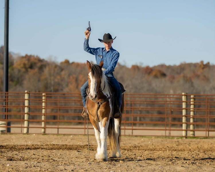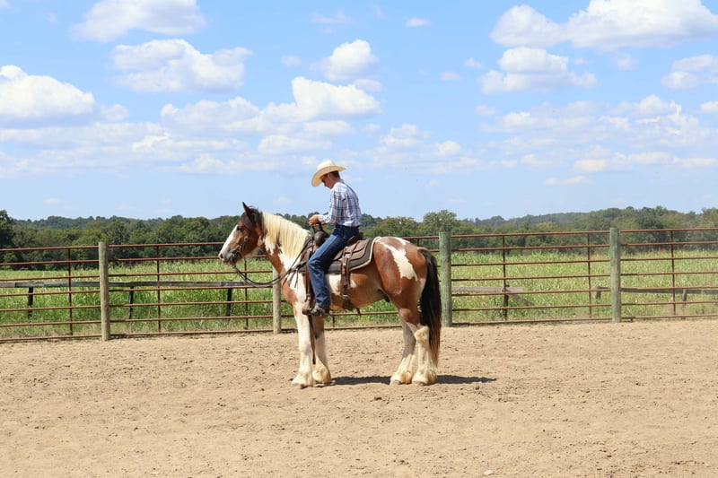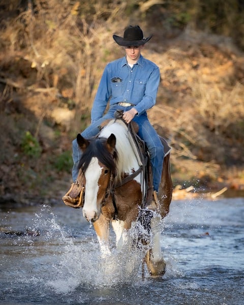 ⚜️ 𝓽𝓱𝓮 𝐇𝐨𝐫𝐬𝐞𝐦𝐚𝐧'𝐬 𝓢𝓱𝓸𝔀𝓬𝓪𝓼𝓮⚜️ Happening now thru MONDAY | DECEMBER 1st - Available EXCLUSIVELY on HorseBid's website! For more details and to register visit: www.Horsebid.com CONSIGNOR CONTACT: Jamie Thomason 270-772-1706 LOCATION: Auburn, KY BREED: Gypsy Drum REGISTERED: No COLOR: Bay Paint HEIGHT: 15.3 AGE: 3 GENDER: Gelding Add a little color to your barn with this one of a kind gelding who brings quiet confidence to every ride! He’s personable and gentle, with that laidback, husband safe attitude everyone wants, but rarely finds. On the trail he’s calm, steady, and sure of himself, whether you’re out for a quick loop or heading off on an overnight camping trip. Safe for guests and dependable enough to help with ranch chores, he’s a trustworthy partner with the feel of an old soul. Clayton is a 3 yr old, bay paint, Gypsy Drum gelding, currently standing 15.3 hands, & he’s ready for his next best friend! Clayton has spent this past summer with us logging miles of trails, working on a cattle operation, and serving as the “go to” When my teenagers organize a weekend camping trip with their non horsey friends. He’s the one we load up every time when we need a steady mount for someone who doesn’t have a horse to ride. Clayton has been trusted to come along on numerous trails across various states. He ties on a line over night, is always quiet, and provides the same safe experience every time. Clayton crosses water, goes up and down inclines, navigates rough terrain & downfall with ease. A more whoa than go style. Clayton is an asset on the farm. We use him to gather cattle alongside working stock dogs, to rope & doctor calves. There’s nothing he isn’t willing to try, a true working partner. Clayton is young, but wise beyond his years. He is gun safe, traffic safe, carries the flag, and is unbothered by the tarp. We’ve rode up on various wildlife including deer & turkey and he just carried on. His daily life includes working alongside ATV/UTV’s, large farm equipment, and other livestock, I’m convinced there’s nothing he hasn’t seen. Whether you’re searching for a safe and steady trail horse, a dependable ranch partner, or simply an enjoyable ride right at home, Clayton is your guy. He’s the kind you can count on every time you swing a leg over. If you would like to meet Clayton or have any other questions prior to adding him to your family, feel free to reach out! PPE’s welcome! We can assist in arranging shipping to anywhere! Contact Jamie @ 270-772-1706 Located in Auburn, KY