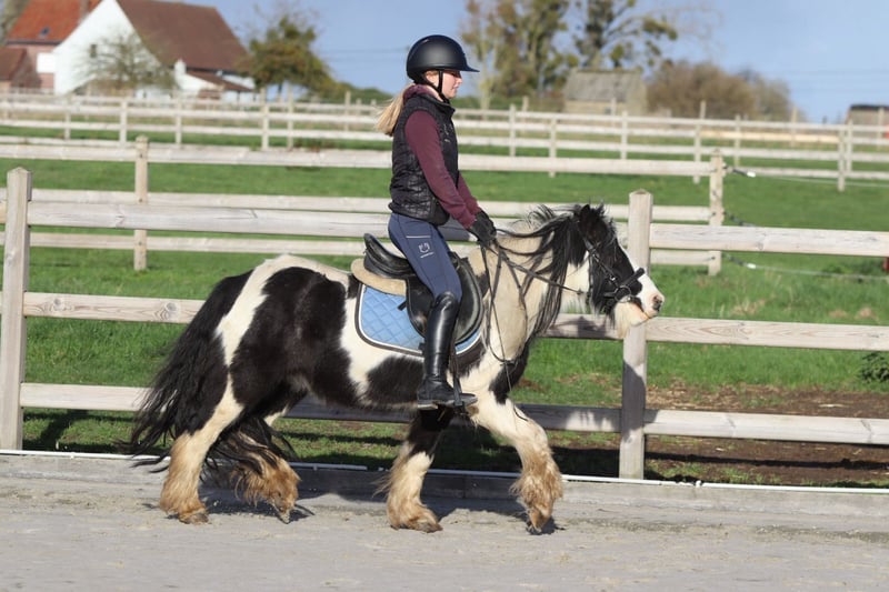 ✨ Tinker Pony Shamus – 5 years old – Gelding – 1.24 m ✨ 🐴💖 A true sweetheart with a beautiful, solid build and charming markings! Shamus is very well-behaved and calm in handling 🤎. He stands perfectly still during grooming, washing, and all other care routines 🌸🧼. Under saddle, he is easy to ride, knows the three gaits well, and has an adorable canter 🐎💨✨. He also enjoys jumping with enthusiasm 🦘💛 and is happy to join a walk in the countryside 🌿😊. Shamus is bombproof (see photos & videos with the ball 🎾🤣) and is a real playful character! In addition, he is gentle with other ponies 🐴🐴 and loads onto transport very smoothly 🚚💫. 📞 More info? +32 475 68 22 43 🎥 For videos: feel free to ask for our website!