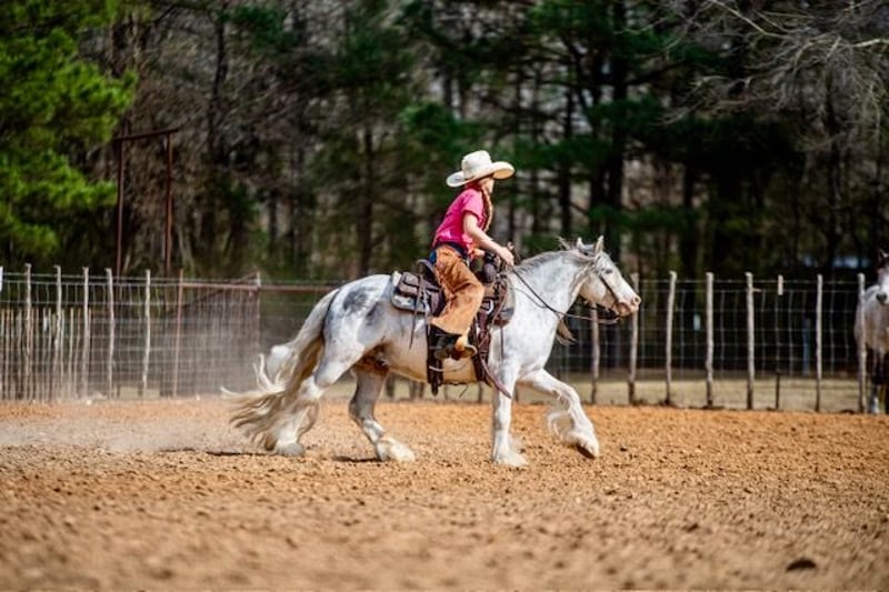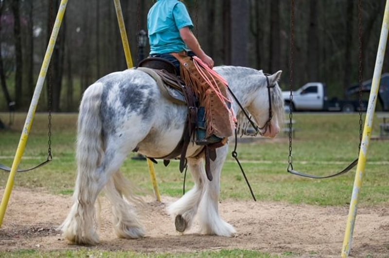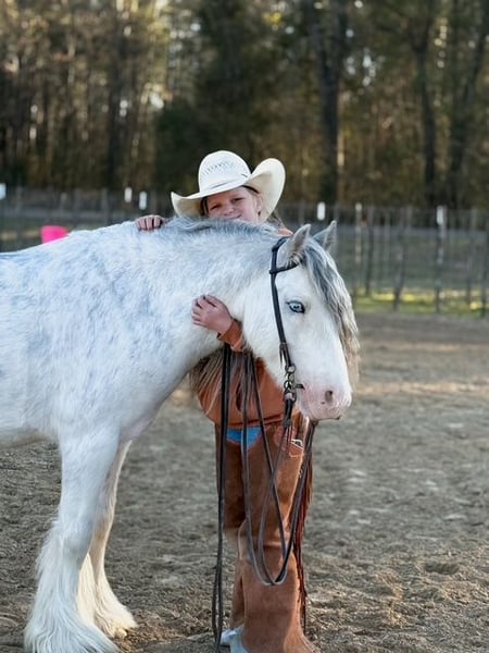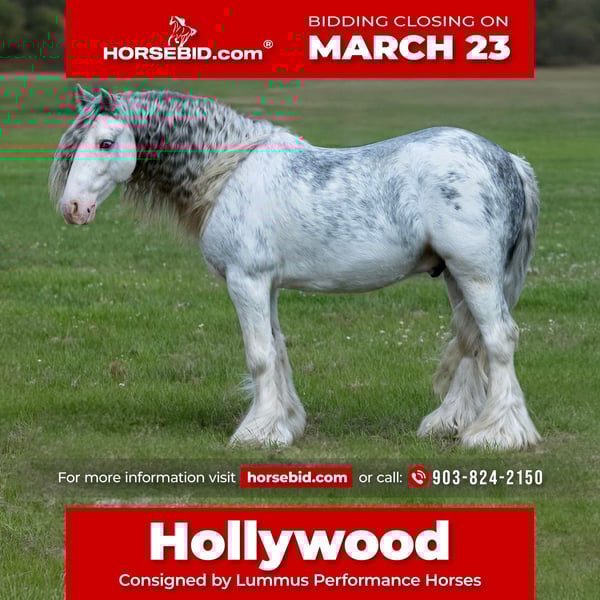 ⚜️𝓽𝓱𝓮 𝐆𝐎𝐋𝐃 𝓢𝓮𝓵𝓮𝓬𝓽⚜️ Happening now thru MONDAY | MARCH 23rd - Available EXCLUSIVELY on HorseBid's website! For more details and to register visit: www.Horsebid.com CONSIGNOR CONTACT: Lummus Performance Horses 903-824-2150 LOCATION: Bloomburg, TX BREED: Gypsy Vanner REGISTERED: Yes REGISTERED NAME: Vines The Hitchhiker COLOR: Black Sabino HEIGHT: 12.2 AGE: 5 GENDER: Gelding Hollywood is one of those fairytale ponies that everyone dreams of having! If you want your kid or grandkid to have the coolest ride in town with all the mane, forelock, and tail you could want, here he is! Hollywood might be 5 yrs old but he is as close to perfect as you will find, he is such an easy going, calm minded guy. He stands 12.3 hands and is as wide as he is tall big enough he can carry a small adult around! He has been hauled extensively and is great in new places even in town with traffic and down the sidewalks with people/dogs. Hollywood leads, loads, stands tied quietly, great to groom, bathes, saddles, and bridles! My girls catch and saddle him while riding their Segways, he couldn’t care less! My 7 yr old can do everything with Hollywood and I trust him around the smallest of kids! He rides Western or English, he would be a great short stirrup mount as he will even ease over small jumps fluently. He is truly the kind you don’t see offered for sale, he’s a part of our family and one of the favorites in the barn for all the visitors. Hollywood is 110% safe with absolutely NO kick or bite and has ZERO buck or freshness even if you leave him stalled for weeks at a time. He will W/T/L good circles, wants to stop hard, and turns around correct. He is extremely easy to ride with smooth gaits and genuinely wants to please. He side passes, opens and closes gates, picks up correct leads, and lopes easy circles. He is great inside the arena or out, he has been started on the barrels, poles, goat tying, and breakaway dummy. My 3 yr old beginner cousin has rode him in the round pen with zero issues. He has done lead-line as well and will take care of the babies! Hollywood is just the best pony and I haven’t had another one like him. Did I mention Hollywood does TRICKS?? He will lay down on command!! He is a gentle old soul that loves people and wants to be with you every second of the day! Easy to catch in a pasture, stalls good, and drinks/eats on the road. He has also been hauled to team ropings, ropes swinging and loud speaker systems don’t bother him a bit! Hollywood has all the outside experience as well, trail riding thru brush and thickets, crossing creeks, dragging logs, riding down the road with traffic, hog hunting, and working cows. He has seen it all and doesn’t ever take a bad step. He will take care of his rider and ease down the steep creek banks, walk slow and easy thru the water, and slow and steady up the other side. Hollywood will lead or follow in a pack, the other horses going without him doesn’t bother him at all. He will walk on a loose rein. He gets along with everything in our pasture including QH mares and geldings. Hollywood is easy to keep, we don’t have any special regimen for his hair, it stays thick and healthy year around. He is UTD on farrier, dewormer, and vaccinations. He is 100% sound and stays barefoot. Hollywood was imported from the United Kingdom when he was 8 months old.