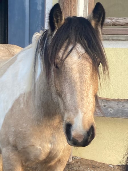 Mein wunderschöner Tinkerwallach Sipatù, ein echtes Indianerpony, sucht ein liebevolles, neues Zuhause, in dem er weiter gefördert und ausgebildet wird. Sipatù sucht seinen Lebensmenschen, vielleicht suchst Du ja dein Lebenspferd? Ich wünsche mir für Sipatù einen Menschen, der mit Ruhe, Herz und Geduld an seiner Seite ist. Du solltest klar und fair mit ihm kommunizieren und ihm Sicherheit geben. Darüberhinaus solltest du bereit sein, ihn ihm Herdenverband in einem Offenstall mit 24/7 Heu zu halten. Sipatù wird im April 6 Jahre alt. Er geht brav in den Hänger, ist brav beim Hufschmied und kennt Spazierengehen und Bodenarbeit (Doppellonge, Longieren). Er hat schon einen Fellsattel getragen und wir sind ein paar Mal auf ihm draufgesessen. Jetzt ist er bereit, schonend angeritten zu werden. Aus Zeitmangel haben wir allerdings seit Oktober 2025, nachdem er von der Alm zurückgekommen ist, nicht mehr mit ihm trainiert. Aufgrund dieses Zeitmangels habe ich mich nun schweren Herzens entschlossen, Sipatù zu verkaufen. Die letzten 4 Sommer durfte Sipatù auf der Alm verbringen. Er ist herdenverträglich, sucht aktiv Kontakt mit anderen Pferden, ist neugierig und dem Menschen zugewandt. Allerdings ist er, seinem Alter entsprechend, gerade in der Pubertät und daher hin und wieder noch ein bisschen rüpelhaft. Sipatù hat ein gesundes Naturell, geht barhuf, ist auch im Winter immer ohne Decke draußen. Seine Zähne sind gemacht, er wurde regelmäßig geimpft und entwurmt. Sipatù ist ein ganz besonderer Kerl und schleicht sich schnell in jedes Herz. Ich wünsche mir für ihn einen Menschen, der ihn sieht, ihn weiter fördert und ihm einen Lebensplatz geben kann.