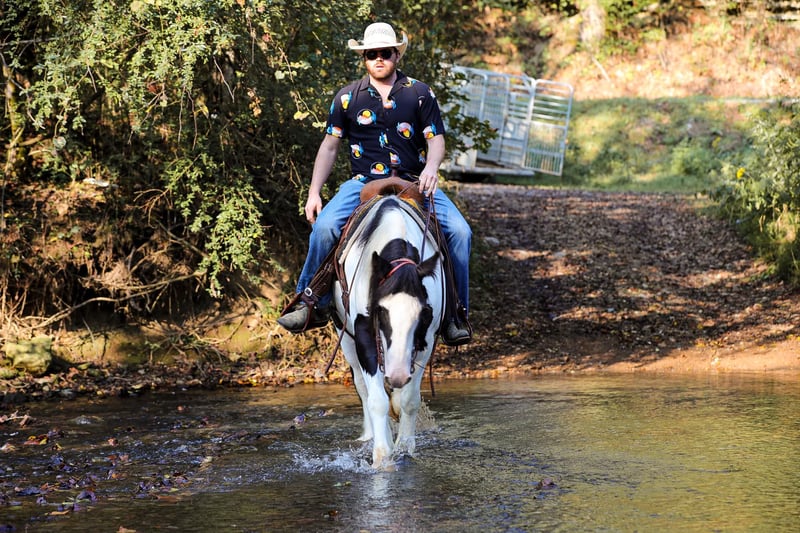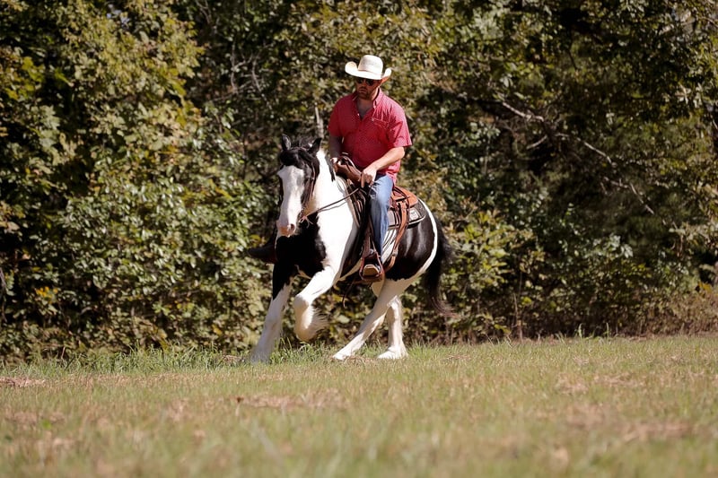 ONLINE AUCTION Place your bids at www.PlatinumEquineAuction.com Starting Bid $3500 Auction ends October 20th, 2024 Need a new saddle? Check out White Rock Saddles on our website or Facebook! Aurora’s Atlas (ATLAS) is a registered Gypsy Vanner (GVHS) 4yr old gelding who is an own son of SD Silver Dollar and he is possibly the coolest and gentlest gelding I have ever had the pleasure of owning. He is truly broke enough for anyone to ride and has seen / done more than most 15yr old horses have ever done. Atlas has the kindest heart and biggest personality you will find in a horse and aims to please you in whatever you are doing! He is one hand broke, picks up his leads, W/T/C, side passes / backs with ease, lays down for mounting and loves to be bathed / groomed. We have done everything you can imagine on him from trail riding, obstacle courses, roped light calves, and even coon hunted on. If you are looking for a True Gypsy that will suit the whole family and is SAFE and SANE then come check out our boy Atlas. For more information on Atlas call Jesse Thomas 931-698-7159 Located in Santa Fe, TN. ONLINE AUCTION Place your bids at www.PlatinumEquineAuction.com Starting Bid $3500 Auction ends October 20th, 2024 Need a new saddle? Check out White Rock Saddles on our website or Facebook!