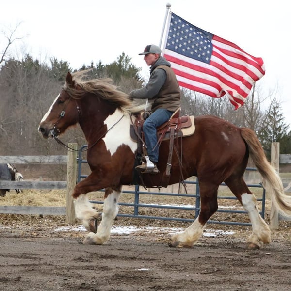 Kingston is a spotted draft Gypsy Vanner cross gelding