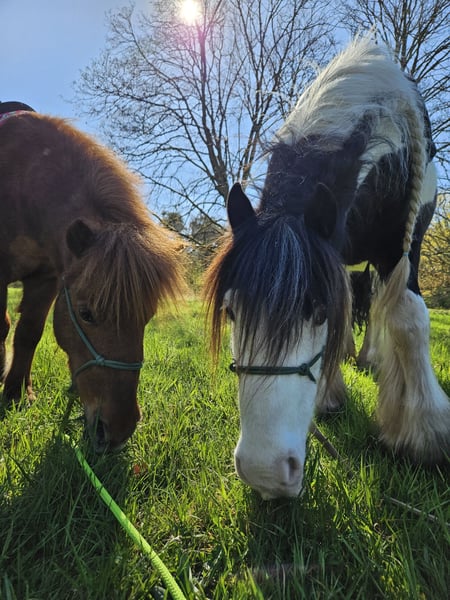 Wir verkaufen schweren Herzens unseren Minitinker Woody. Woody ist 128cm groß und 8 Jahre alt. Er ist ein echter Hingucker mit seiner langen Mähne und seinen tollen Behängen. Er hat weder Rehe oder Mauke, lebt bei uns im Aktivstall in einer gemischten Herde mit Großpferden und Ponys. Hier ist er im oberen Mittelfeld der Rangordnung. Woody ist seit drei Jahren bei uns, er kam damals direkt aus Irland. Was genau er dort erlebt hat, wissen wir nicht – allerdings nicht viel Gutes. Er kam verängstigt und sehr scheu zu uns. Hier durfte er die ersten zwei Jahre einfach in der Herde leben, ankommen und merken, dass man ihm nichts tut. Seit einem Jahr arbeite ich nun mit ihm. Er ist vom Boden aus gut gearbeitet, bestreitet sämtliche Trail- und Antischreckparcours, geht in den Hänger, kennt Schmied und Tierarzt, Spaziergänge, landwirtschaftliche Maschinen, Straßen, sämtliche anderen Tiere und lärmende Kinder. Vom Boden aus bringt ihn nichts aus der Ruhe. Jedes kleine Kind kann ihn überall hin bringen, über Wiesen, vorbei an Futtertrögen usw. Er würde niemals am Strick zerren. Er lässt sich auch von einer Gruppe Kinder putzen und betüddeln. Unter dem Reiter ist Woody extrem fein zu reiten. Hier kennt er bisher Schritt, Trab, Galopp. Ins Gelände geht Woody allein oder in der Gruppe, man kann sich auch im Wald von einem anderen Pferd trennen ohne Probleme und ihn in allen Gangarten sicher reiten. Er ist nicht schreckhaft. Meine Kinder reiten ihn alle frei im Wald. Er geht als Handpferd oder mit Handpferd – völlig unkompliziert. In der Halle hat er Schwierigkeiten, sobald es an die Stellung auf der rechten Hand geht. Im Schritt ist dies möglich, im Galopp zum Teil auch. Im Trab ist es extrem schwer. Aufgrund seiner schlechten Erfahrungen kann man ihn von oben aus aber nur „bitten“. Sobald Druck aufgebaut wird, bekommt er Angst und gerät ins Rennen. Er geht dann nicht durch, aber er wird dann immer schneller, bis man zum Schritt durchpariert (das ist ohne Probleme möglich, man kann in dem Moment dann nur nicht weiter an der Stellung arbeiten). Er bockt nicht! Wir wünschen uns für Woody einen Platz bei jemandem, der ihm Zeit gibt, Vertrauen aufzubauen. Dann ist er ein richtig toller Kerl. Er kommt auf Pfiff in vollem Galopp aus zwei Hektar Aktivstall von der Heuraufe und auch von der Graskoppel. Für Reitschulen ist Woody nicht geeignet, deshalb kann er auch nicht bleiben. Er verträgt keine ständig wechselnden Reiter. Woody ist extrem fein zu arbeiten, er achtet auf die kleinsten Signale und will alles richtig machen. Er ist das höflichste Pferd dem Menschen gegenüber, dem ich je begegnet bin. Toll wäre jemand, der Spaß an Horsemanship hat und vielleicht gerne ins Gelände geht. Gewichtstechnisch deckt er gut bis 55 Kilo ab. Reitvideos gerne auf Anfrage, sowohl von meinen Kindern, wie von mir. Woody ist regelmäßig geimpft und entwurmt ( inklusive regelmäßiger Kotproben). Außerdem wurde er regelmäßig der Osteopathin vorgestellt. Der Preis ist Verhandlungsbasis – uns geht es nicht ums große Geld. Wir möchten, dass es ihm gut geht und er zu jemandem kommt, der auf ihn eingehen kann. Wir freuen uns auf passende Anfragen gerne telefonisch unter 017631296542