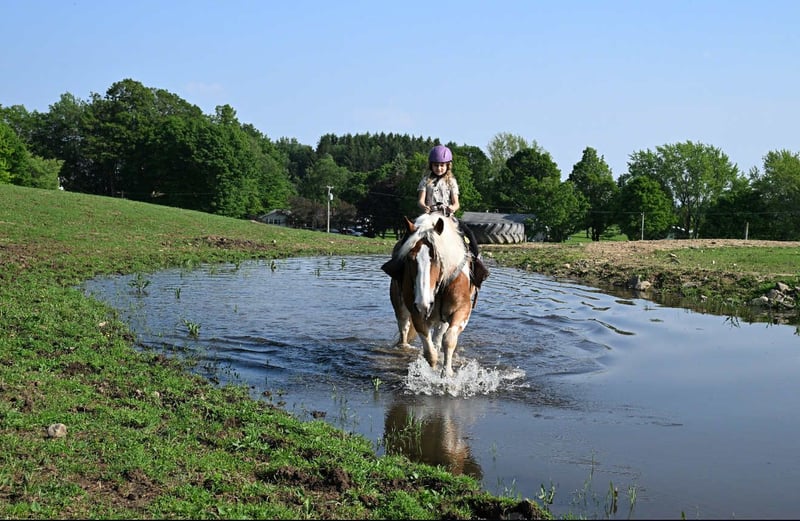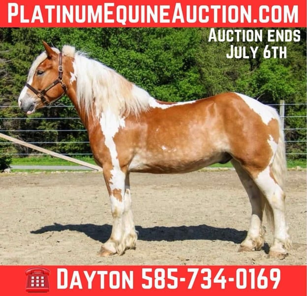 ONLINE AUCTION Place your bids at www.PlatinumEquineAuction.com Starting Bid $3500 Auction ends July 6 2025 Need a new saddle? Check out White Rock Saddles on our website or Facebook! Meet Ranger a Belgian Gypsy Cross gelding, with his eye-catching appearance and strong build, he’s the kind of horse that grabs everyone’s attention no matter where he goes. Ranger is 7 years old, standing 16hh tall and 1400lb. He is a dependable partner both on the trail and in the arena. He’s sure-footed and confident on the trail, whether riding solo or in a group. Ranger will cross ditches, ravines, and anything he encounters on the trail. We have ridden him on the busy roads and he is not bothered by any traffic! Ranger will walk, trot, and canter on the correct lead in the arena. We have put Ranger through our rigorous obstacle course, and he passed with flying colors! Ranger has also been used for our lessons with the older kids, and he is easy for them to ride! Ranger will stand patiently for the vet, farrier, and clipping! Ranger sells 100% sound with no vices. We think Ranger would be best suited for an intermediate rider! PPE are welcome at the buyer’s expense! We are located in Warsaw, NY. Contact Dayton Wolcott for more information on Ranger at 585-734-0169. ONLINE AUCTION Place your bids at www.PlatinumEquineAuction.com Starting Bid $3500 Auction ends July 6 2025 Need a new saddle? Check out White Rock Saddles on our website or Facebook!