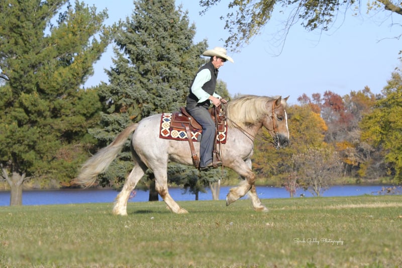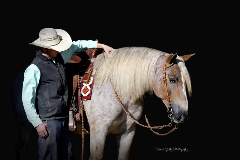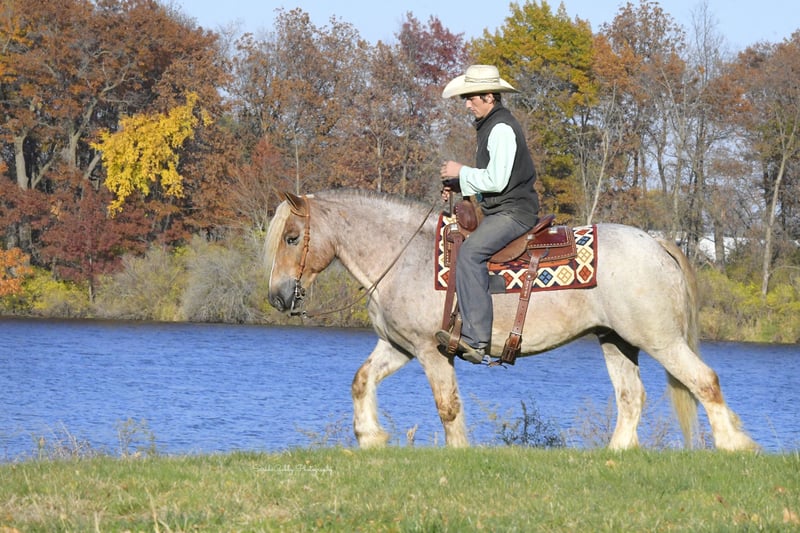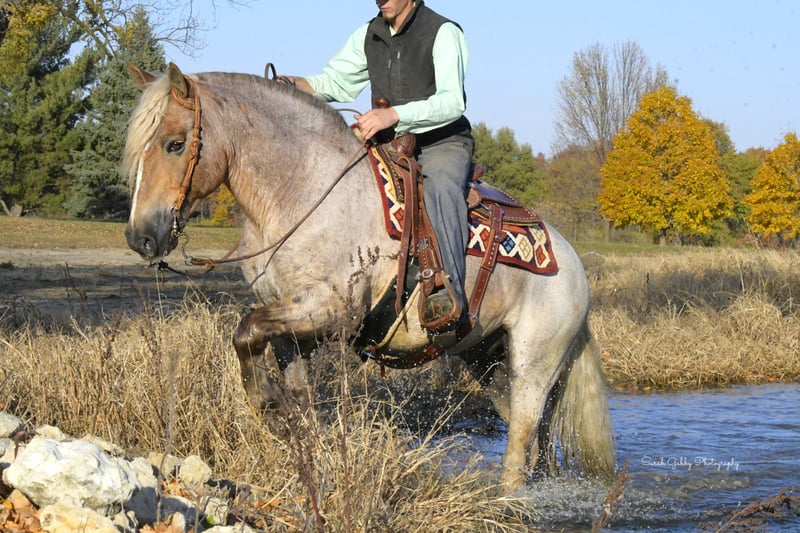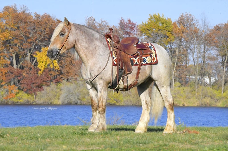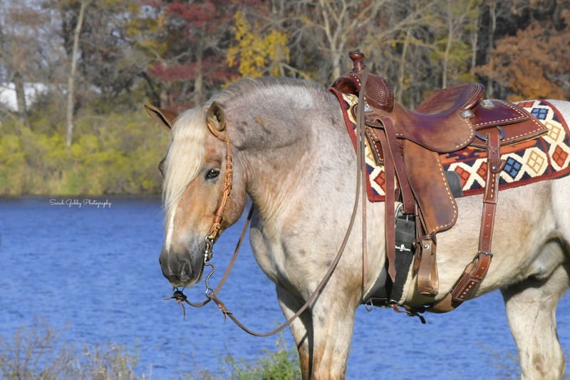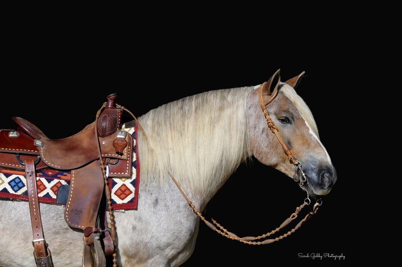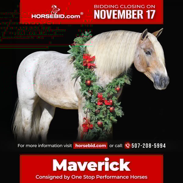 🎲𝓽𝓱𝓮 𝐑𝐈𝐃𝐄𝐑'𝐒 𝓒𝓱𝓸𝓲𝓬𝓮🎲 Happening now thru MONDAY | NOVEMBER 17th - Available EXCLUSIVELY on HorseBid's website! For more details and to register visit: www.Horsebid.com CONSIGNOR CONTACT: One Stop Performance Horses for Norman Raber 507-208-5994 LOCATION: Oelwein, IA BREED: Gypsy Cross REGISTERED: No REGISTERED NAME: Maverick COLOR: Strawberry Roan HEIGHT: 14.2 AGE: 8 GENDER: Gelding Maverick may just be the most unique cross bred that has ever been infront of my camera. He is a stunning 8yr old strawberry roan Gypsy X Haflinger cross with a long flaxen mane, forelock, tail and lighter feathering along with some dark speckles throughout his body. And besides his extremely flashy coloring, this gelding’s conformation, size and build is ideal! He stands just a hair shy of 14.3hh, boasting a lot of bone and substance without being too heavy and still keeping a very clean and athletic build. He also has such a beautiful little head and big doe eyes. Maverick is a very gentle soul by nature. Quiet and easy going. He rides both English and western, and absolutely loves the trails and outdoors. He is great in traffic, riding down the roads, through the fields, woods, and LOVES to be in the water. He is great in groups, or out on solo rides. He also knows all the basics in the arena, lopes/canters off on cue, side passes, pivots, will do pattern work, and all the arena obstacles as well. He has been taken over some small jumps, he carries the flag, drags the tire, is great with tarps, and has been used to pull the drag to work up the arena. Very easy, uncomplicated and straightforward to ride and operate. He was also started as a youngster in harness, and has been driven to town as well, although the past year or so he has mostly been enjoyed under saddle so he may need a refresher on the driving. This horse quickly became one of the favorites in the barn, and enjoyed by the entire family from riders 12yrs of age on up. Whether it be fun arena rides, going down the road, or out hitting the trails. In the barn Maverick is a welcomed addition. He stalls great, or loves his turnout time with others. ties, cross ties, and is just a joy to be around and a very easy keeper. Loads and hauls great and is wonderful in new environments. Maverick is the perfect age, with a solid all around start and a whole life ahead of him to go enjoy. This horse wants to be your best friend, companion and wants to enjoy all of life’s adventures with you. Maverick has been nothing but sound, solid and the epitome of health since day one. He requires no special cares of any kind, is blemish free, and will fit in to anyone’s program, routine, or set up. UTD on all cares, fresh coggins and has an appt to get his teeth done with Tuesday (10/11) so he will be ready to go enjoy. You would be hard pressed to find another one just like him. **One Stop Performance Horses does not own this horse and is acting as Seller’s Agent**