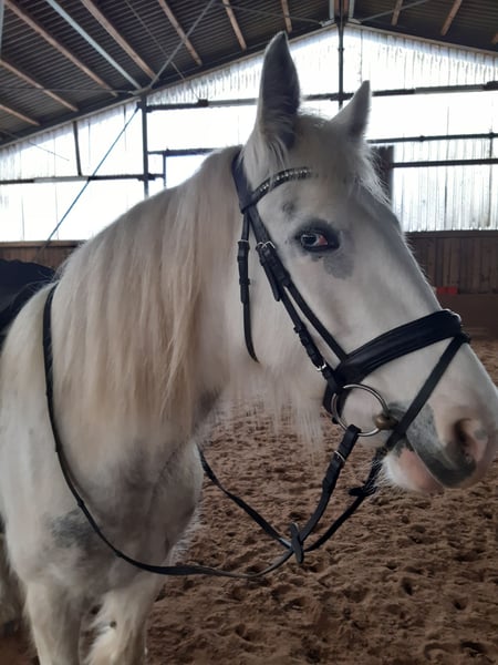 Te koop: Tinker merrie – perfect voor de vrijetijdsritten! Pamina is een allrounder. Ze heeft plezier, ongeacht hoe je met haar bezig bent. Of het nu gaat om rijden op de rijbaan of in het terrein, longeren, wandelen, grondwerk of gewoon een beetje verwennen. Pamina is gelukkig wanneer ze aandacht krijgt en actief bezig is. Ik heb het grote geluk dat ik de volledige geschiedenis van Pamina ken. Ze is bij ons geboren. Ze heeft geen negatieve ervaringen gehad die haar gedrag hebben beïnvloed, waardoor ze zeer open en vriendelijk naar mensen toe is. Samen met een professionele paardentrainer hebben wij Pamina opgeleid volgens de principes van de academische rijkunst. Ze reageert vooral op lichaamstaal en is altijd zeer gemotiveerd en leergierig. Voor meer informatie neem gerust contact met mij op.