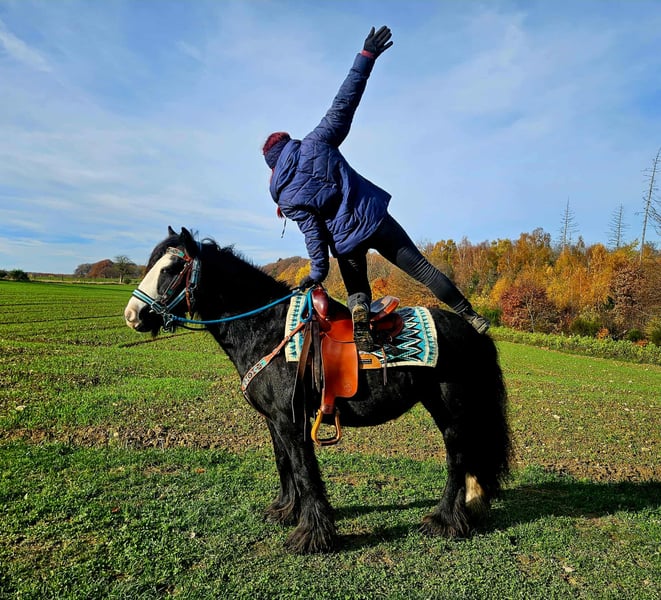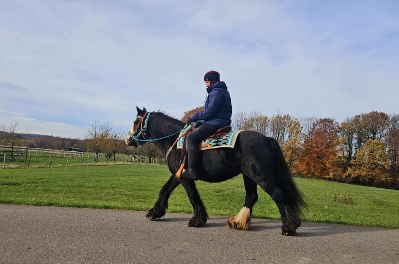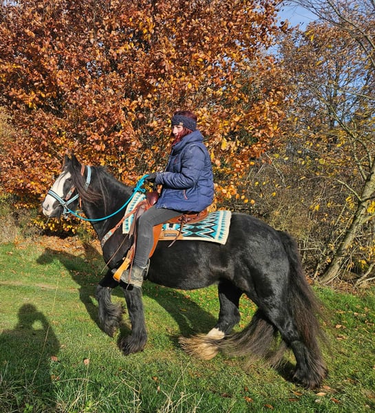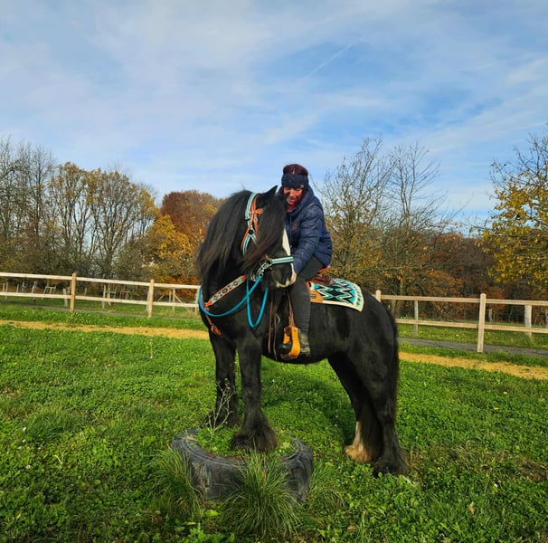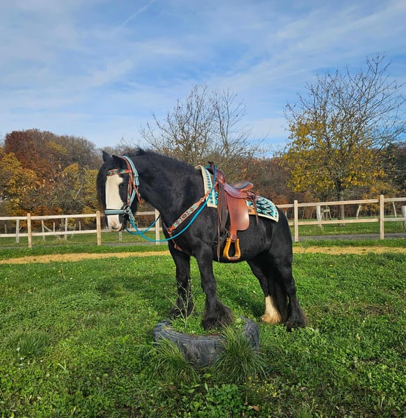 Tinker Mare "Princess" – Calm, Motivated & a True Treasure Details: • Name: Princess • Breed: Tinker • Age: 12 years • Height: approximately 14.1 hh • Price: €5,600 • Health certificate: available We are offering our beautiful, sturdy Tinker mare "Princess." She impresses with her loving nature, balanced temperament, and honest character – simply a horse that captures your heart instantly. 🐴 She is: – Calm and completely reliable in handling and under saddle – Very people-oriented, affectionate, and attentive – Motivated, sensitive to aids, and eager to learn – Steady and composed – experienced in riding arenas, indoor riding halls, and on the trail – Confident alone or in a group – Suitable for children – Ideal as a school or therapy horse With her gentle, friendly demeanor and big heart, Princess is a wonderful partner for families as well as for riding and therapy centers. A true heart horse that brings joy every day and is always reliably by her rider’s side. 🐎 Perfect for: Families, leisure riders, or facilities seeking a dependable, personable, and versatile horse – whether for lessons, therapy, or relaxed trail rides. Our horses: – Regularly dewormed – Maintained by farrier and osteopath 🛍 Farm shop: Western saddles, bridles, accessories 🚛 Transport & equipment organized affordably upon request ✅ Our services: – 3-month exchange guarantee – Trial ride: €35, each additional horse €25 (credited if purchased on the same day) – €100 immediate discount for pickup/transport on the same day – Personal and honest advice 📞 Please inquire only by phone: 0171 – 4001968 🕗 Available daily from 8 am to 8 pm ⚠️ No emails or WhatsApp messages ⚠️ All information provided without guarantee