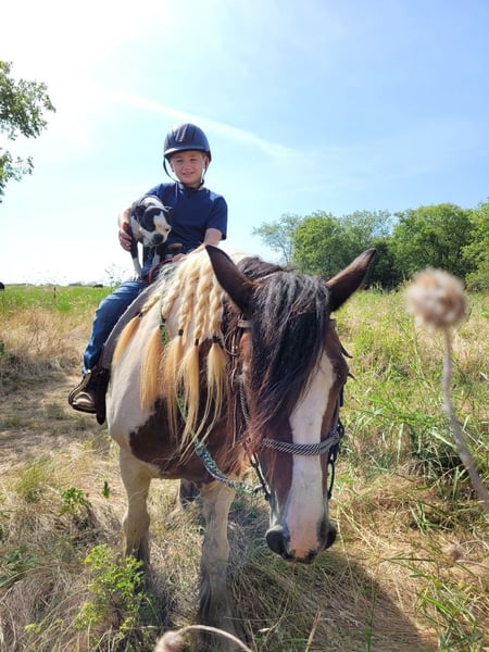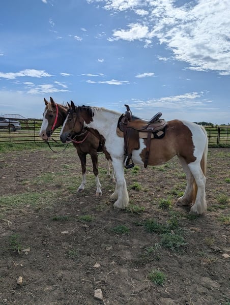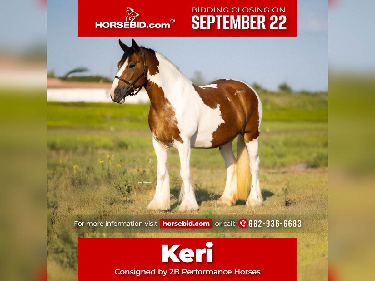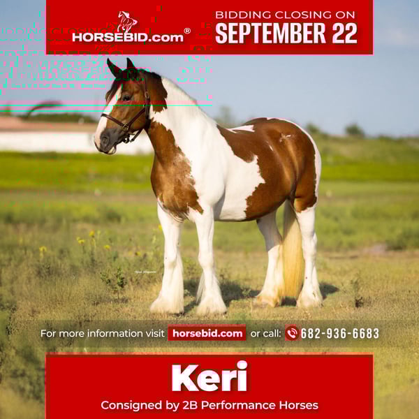 🍁𝒕𝒉𝒆 𝐅𝐀𝐋𝐋 𝑺𝒑𝒆𝒄𝒕𝒂𝒄𝒖𝒍𝒂𝒓🍁 Happening now thru MONDAY | SEPTEMBER 22nd - Available EXCLUSIVELY on HorseBid's website! For more details and to register visit: www.Horsebid.com CONSIGNOR CONTACT: 2B Performance Horses 682-936-6683 LOCATION: Hillsboro TX BREED: Gypsy REGISTERED: Yes REGISTERED NAME: Stones Keria COLOR: Bay Tobiano HEIGHT: 14.1 AGE: 11 GENDER: Mare Keri girl, the barn favorite and everyone's go to for adventure. Keri has proven to be the safe of the safe and while she is great in my lesson program for first time riders, she excels as a trail horse. Keri is looking for the rider who wants to go every weekend, haul all over, ride with friends, camp out, join parades, and hunt for adventure. She is sure footed, brave and proven to get you where you want to go safely. She's the perfect height for easy mounting and she's built like a brick house. Sure, Keri is absolutely adorable toting a kid down the trail but she's stout enough to carry a large adult rider all day everyday. Rocky terrain, big hills, fallen trees, water crossings, bridges, cows, deer...whatever she will truck on through. Keris favorite speed is walk, but she will happily trot for miles and canter when required. She tolerates saddle bags, dogs, ponying colts and being run into by green horses. Ride her bareback, backwards or double she's just happy to go. She's led parades and carried flags too, like it's just another day in paradise. In the arena Keri is solid and safe. W\T\L both ways, stops off "whoa" and has a decent understanding of leg yields. Keri is barefoot and an easy keeper, she fits in with a herd or is happy in a stall. Shes great for the farrier, stands tied, easy to catch, bathes, good for body clipping, loads and hauls great. No vices or health issues. Keri girl is ready to hit the trails for you this fall.