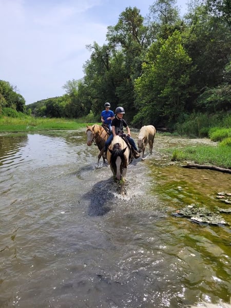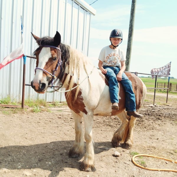 🍁𝒅𝒆𝒓 𝐅𝐀𝐋𝐋 𝑺𝒑𝒆𝒄𝒕𝒂𝒄𝒖𝒍𝒂𝒓🍁 Jetzt bis MONTAG, den 22. SEPTEMBER – EXKLUSIV auf der Website von HorseBid verfügbar! Für weitere Details und zur Registrierung besuchen Sie: www.Horsebid.com KONTAKT DES VERKÄUFERS: 2B Performance Horses 682-936-6683 ORT: Hillsboro, TX RASSE: Gypsy REGISTERED: Ja REGISTERIERTER NAME: Stones Keria FARBE: Brauner Tobiano GRÖSSE: 14,1 hh ALTER: 11 Jahre GESCHLECHT: Stute Keri, das Lieblingspferd im Stall und die Anlaufstelle für Abenteuer. Keri hat sich als das sicherste Pferd erwiesen und während sie großartig in meinem Unterrichtsprogramm für Anfänger ist, glänzt sie als Trailpferd. Keri sucht den Reiter, der jedes Wochenende unterwegs sein möchte, überall hinfahren, mit Freunden reiten, campen, an Paraden teilnehmen und Abenteuer suchen will. Sie ist trittsicher, mutig und hat sich bewährt, um dich sicher ans Ziel zu bringen. Sie hat die perfekte Höhe für einfaches Aufsteigen und ist wie ein Fels in der Brandung gebaut. Sicher, Keri ist absolut bezaubernd, wenn sie ein Kind auf dem Trail trägt, aber sie ist stark genug, um einen großen Erwachsenen den ganzen Tag zu tragen. Rocky Terrain, große Hügel, umgefallene Bäume, Wasserquerungen, Brücken, Kühe, Rehe... egal was, sie meistert alles. Keris Lieblingsgeschwindigkeit ist der Schritt, aber sie wird gerne mehrere Meilen traben und kann auch galoppieren, wenn es nötig ist. Sie toleriert Satteltaschen, Hunde, das Führen von Fohlen und das Zusammenstoßen mit unerfahrenen Pferden. Reite sie ohne Sattel, rückwärts oder zu zweit, sie ist einfach glücklich, unterwegs zu sein. Sie hat Paraden angeführt und Fahnen getragen, als wäre es ein ganz normaler Tag im Paradies. In der Halle ist Keri solide und sicher. W\T\L in beide Richtungen, stoppt auf "whoa" und hat ein gutes Verständnis für Seitengänge. Keri ist barfuß und ein pflegeleichtes Pferd, sie passt gut in eine Herde oder ist glücklich in einer Box. Sie ist großartig für den Hufschmied, steht angebunden, ist leicht zu fangen, lässt sich baden, ist gut für die Körperrasur, lädt problemlos und transportiert sich gut. Keine Laster oder gesundheitlichen Probleme. Keri ist bereit, in diesem Herbst mit dir die Trails zu erkunden.