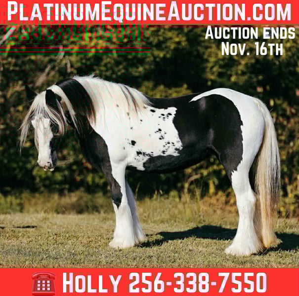 ONLINE AUCTION Place your bids at www.PlatinumEquineAuction.com Starting Bid $3500 Auction ends November 16th, 2025 Need a new saddle? Check out White Rock Saddles on our website or Facebook Thelma – an ABSOLUTELY stunning 13 yr old, standing around 14.2hh, Gypsy Vanner mare broke for anyone, at any stage in riding. She is gentle, safe and beginner friendly. She is a seasoned trail mount and is as sure footed as you could ask for. She will wade through the water, walk through the thick brush, and safely go up or down steep inclines. Thelma will lower her head and let you enjoy a nice, slow comfy trail ride all day long if you prefer. She is super easy to get along with- stands still to be tacked and mounted, loves a bath and to be groomed on. She trailers and hauls very well also. Most importantly she’ll have the same calm, gentle attitude every single day. Thelmas the true definition of family friendly and an absolute confidence booster, not to mention easy on the eyes! Louise‘s ad (her best friend) is also up for viewing, so go check her out as well! They would love to stay together if possible and make someone a nice husband and wife, or mom and daughter pair! For more info contact Holly Dunivan 256-338-7550 with any questions. ONLINE AUCTION Place your bids at www.PlatinumEquineAuction.com Starting Bid $3500 Auction ends November 16th, 2025 Need a new saddle? Check out White Rock Saddles on our website or Facebook