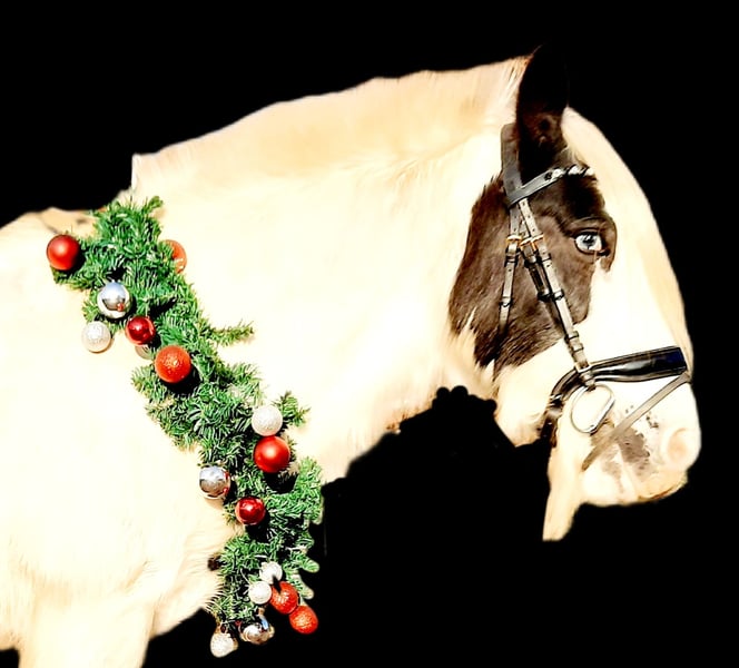 Wonderful Rappscheck Tinker mare, 15 years old, 14.7 hands, with a blue eye. Well-behaved both in handling and under saddle, easy to ride, with a lively, athletic movement. No lameness or mud fever. She is familiar with dogs and tractors, not spooky, and stands well for the farrier and loading.