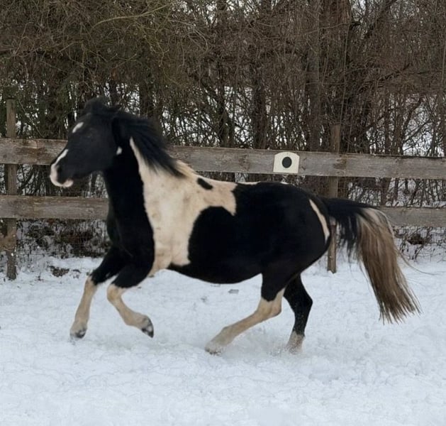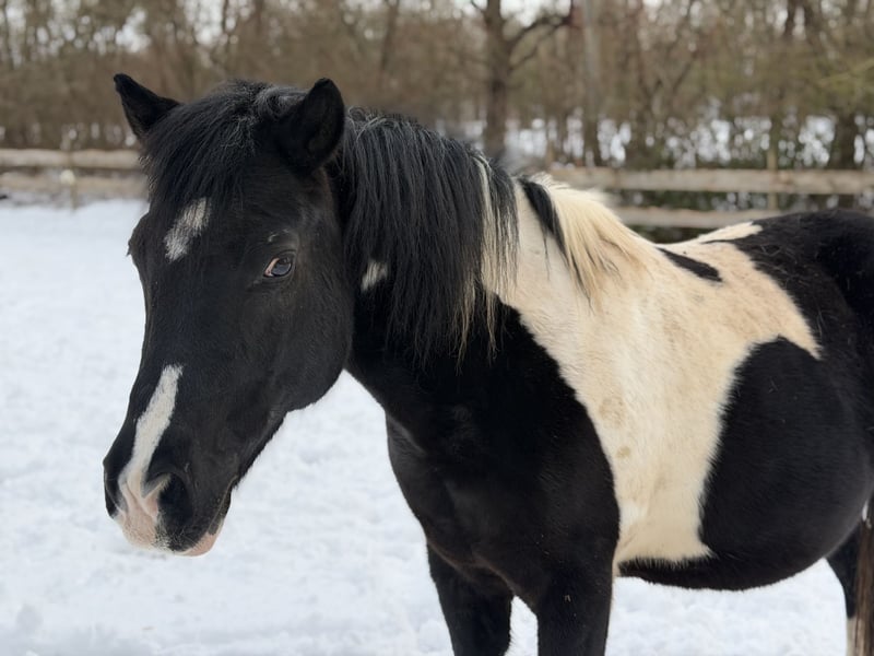 Gescheckte Ponystute (Tinker-Typ) sucht neues Zuhause Zum Verkauf im Auftrag steht eine schwarz-weiß gescheckte Ponystute (Tinker-Typ / Mix), geboren am 04.08.2009, ca. 130–135 cm Stockmaß. Sie war laut Vorbesitzer früher als Therapiepferd im Einsatz. Im täglichen Umgang ist sie unkompliziert und zuverlässig, kein Problempony, jedoch auch kein reines Anfängerpony. Geführt lief sie in der Vergangenheit stets ordentlich und brav. Aufgrund von Zeitmangel wird sie aktuell nicht geritten und nicht gearbeitet, daher ist ein Probereiten derzeit nicht möglich. Unter dem Reiter benötigt sie einen sicheren und erfahrenen Reiter, da sie kein Anfängerpferd für selbstständiges Reiten ist. Sie ist herdenverträglich, in der Herde jedoch ranghoch. Sie steht aktuell mit Wallachen und Stuten zusammen. Sie kennt Offenstall / Weide und täglichen Umgang und ist hundegewohnt (auch größere Hunde, z.B. Bulldoggen). Sie hatte bereits ein Fohlen. Geeignet z.B. für: • Freizeit • Familien mit Erfahrung • Bodenarbeit • geführtes Reiten • als Beistell- oder Zuchtpony Kein Notverkauf. Nur in pferdegerechte und liebevolle Hände abzugeben. Verkauf erfolgt im Auftrag. Bei Interesse bitte ausschließlich WhatsApp oder Telefonisch melden Preis: 3300 VHB