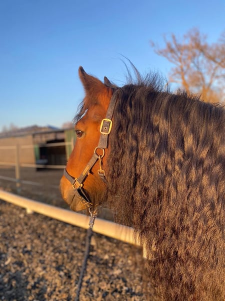 Beautiful, incredibly sweet, and easy-going mare seeking her dream home. She is an absolute leisure horse and loves being out in the field — whether riding or enjoying a relaxed walk on the ground. She has no problem going alone into the terrain. Riding arena and indoor hall are also available, but she has had limited work and training in these areas recently, so she is somewhat stiff at the moment. However, she always tries to please, provided she is treated fairly and with respect. She is a horse whose trust must be earned initially. Once that is established, she is a dream horse — gentle and relaxed. Only to be placed in the very best hands!