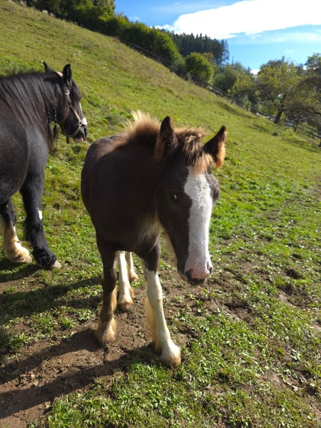 Our charming Tinker mare Lara, born on May 10, 2025, is a real heartbreaker. She is chestnut with lovely white markings on her legs and belly, complemented by fine white stichelhaar, giving her a very distinctive appearance. Lara's temperament is curious, spirited, and friendly – a true children's pony at heart! She loves human contact and is always the first to say "hello." With her friendly and attentive nature, she will undoubtedly be a wonderful partner for leisure riding, family, and training. Profile: Date of Birth: May 10, 2025 Breed: Tinker Gender: Mare Color: Chestnut with white markings, white stichelhaar Temperament: Curious, affectionate, playful Lara has everything you could wish for in a future leisure horse or a loyal companion.