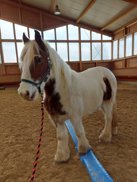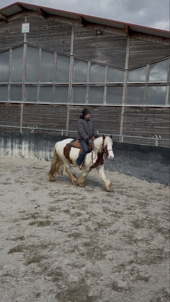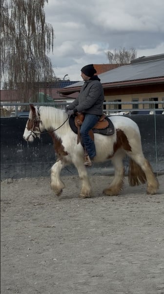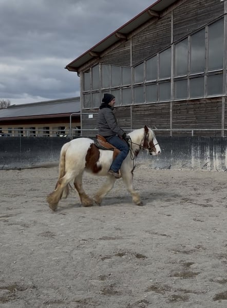 2023 geborene Irish Cob Stute sucht ihr neues Zuhause. Stockmaß ca. 1.45m. Für ihr Alter ist sie bereits in einem tollen muskulären Zustand und deckt auch große Reiter gut ab! Sie läuft derzeit brav die Grundgangarten und befindet sich in weiterer Ausbildung. Im großen Herdenverbund aufgewachsen ist sie gut sozialisiert und verträglich mit anderen Pferden. Die Stute war bereits in kleinen Gruppen im Gelände und lernt nun das Reiten in der Bahn. Zudem ist sie schmiedefromm & verladefromm. Bei Interesse an der lieben Stute rufen Sie gerne an. Für einen Besuchstermin mit Vorreiten und Probereiten berechnen wir 40€ die beim Kauf des Pferdes selbstverständlich erstattet werden. Hierfür bitten wir um Verständnis. TEL.: 01709343872