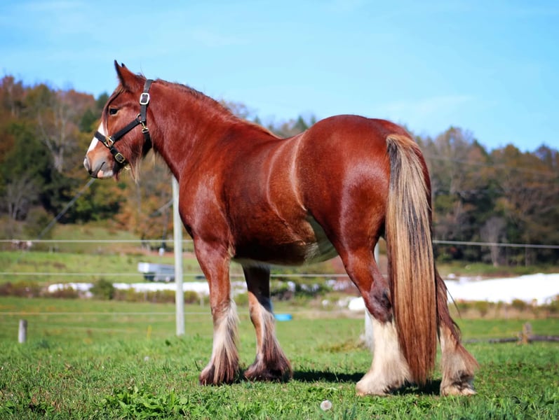 Deze prachtige kastanjebruine merrieveulent lijkt precies op haar vader en beschikt over een koninklijke stamboom met grootouders zoals The Gypsy King, Vintage Vanner’s Tessa, Clononeen Poitin, Sid’s Good Stallion en The Rose. Deze fantastische merrie draagt indrukwekkende genetica aan beide zijden. WHR Anisette is lief, intelligent, heeft leeftijdsadequate training en zal zeker de aandacht trekken waar ze ook gaat. Ze kan worden aangebonden, voor de hoefsmid staan en vindt het heerlijk om verzorgd te worden. Haar vader is 14,2 hh, en haar moeder is 15,2 hh. Op basis van haar huidige grootte denken we dat Chrome ongeveer 15 hh zal worden. Deze kwaliteitsvolle Vanner-merrie is geregistreerd bij GVHS en PSSM1-negatief op basis van haar afstamming. Ze zou een geweldige prestatiepartner zijn of een waardevolle aanvulling op uw fokprogramma.