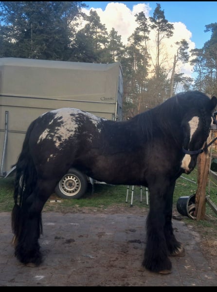 For Sale: Irish Cob Mare – Perfect for Leisure Riding! We are offering a beautiful Tinker mare, born in 2023. She impresses with her striking tiger-checkered coat and friendly demeanor. With an expected height of 152 cm [still growing], she is ideally suited for leisure activities, shows, or breeding. The mare is healthy, well-socialized, and exhibits a very gentle nature in handling. She is also easily clipped and has begun light lunging work. PSSM free. Sold only due to family health reasons; this is not an urgent sale. She comes with papers from the ICS Foal Premium 1e. Whether for long walks or simply to fall in love with—this young Tinker lady is a wonderful companion for anyone seeking a reliable and charming leisure horse. I have already led my daughter around in walk, and she was very calm. She is still in a growth phase and remains somewhat rough, so she needs time and patience to develop fully. Overall, she is very calm and relaxed. The saddle does not bother her. She has always been healthy, with no mud fever or dermatitis. She is well-behaved when trimmed and is familiar with tractors, dogs, children, etc. She has an excellent conformation with a beautiful posture. If interested or for further information, please feel free to contact me.