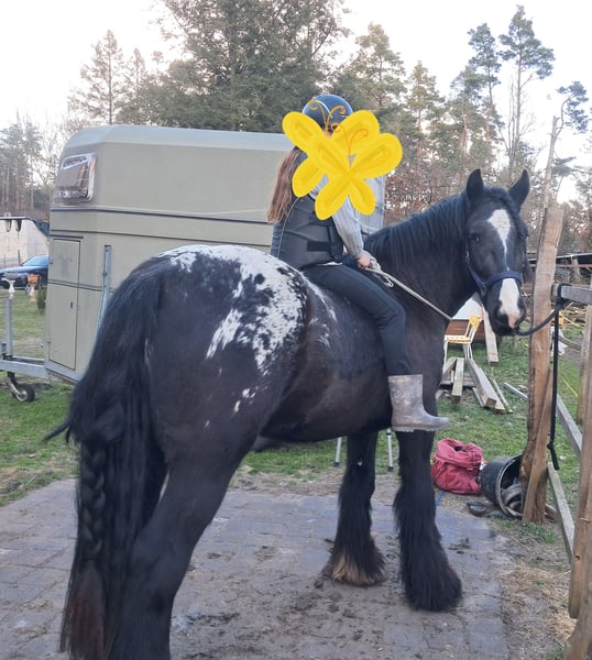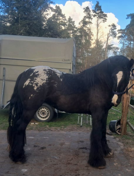 Verkaufe eine bezaubernde Tinker-Stute, geboren im Jahr 2023. Diese junge, vielversprechende Stute besticht durch ihr eindrucksvolles Tigerscheck-Muster, das sofort ins Auge fällt. Mit einem Stockmaß von 153 cm ist sie bereits jetzt gut bemuskelt und zeigt viel Potenzial für die weitere Entwicklung. Die Tinker-Stute ist ideal für den Freizeitbereich geeignet. Sie ist gut sozialisiert, freundlich im Umgang und zeigt sich bei der täglichen Pflege sowie beim Herumtollen im Offenstall stets ausgeglichen und angenehm im Wesen. Ihr robustes Fundament und ihre angenehme Art machen sie zu einer zuverlässigen Begleiterin für alle, die Freude an einem vielseitigen Freizeitpferd haben. Diese junge Tinker-Dame ist perfekt für alle, die auf der Suche nach einem charmanten, gutmütigen Pferd mit viel Charakter sind. Sie bietet eine hervorragende Basis für eine spätere Ausbildung und ist bereit, gemeinsam mit ihrer neuen Familie die Welt zu erkunden. Sie kennt bereits das Auf- und Ab-Sitzen sowie Schritt und Trab. Handpferd, Spaziergänge auch alleine und alles, was auf dem Hof passiert, ist sie immer gelassen und war immer gesund und munter. Schmied ,Hunde ,Traktoren alles kein Problem. Sie hat die Ruhe weg.