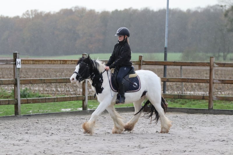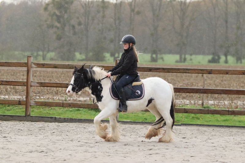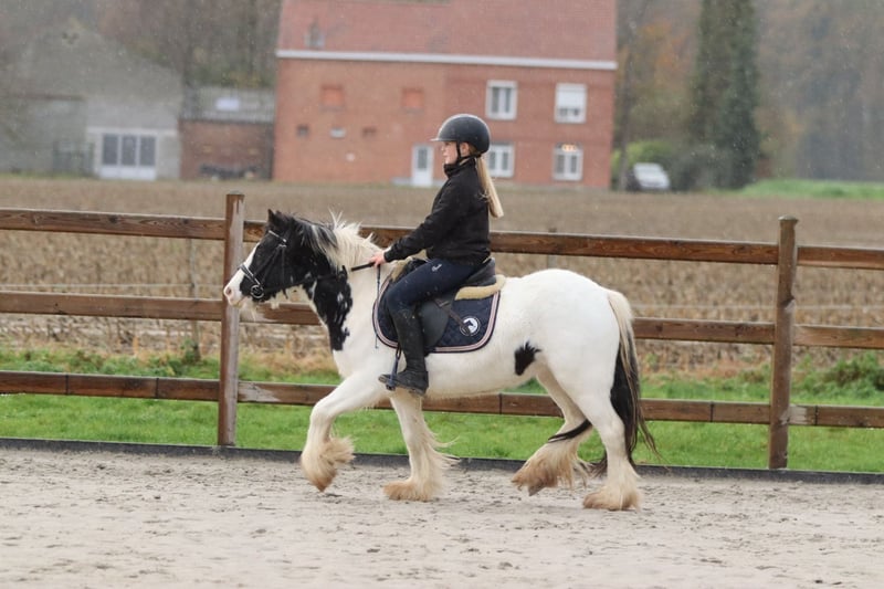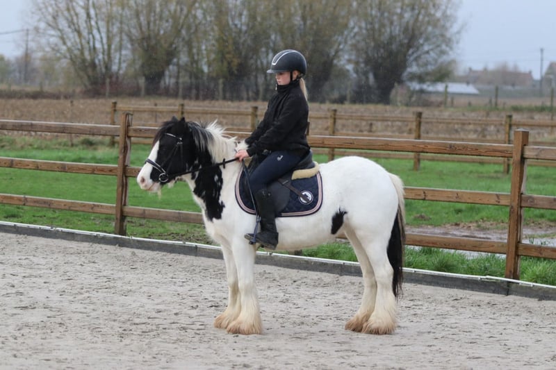 Evie 🌸 Pony femmina di 4 anni molto dolce – altezza 1,26 m Questa splendida giovane femmina non dimostra affatto di avere solo 4 anni. Si muove molto bene e con semplicità nei tre andamenti e salta con grande facilità. Andare a cavallo in esterno non le dà problemi: non è spaventata e si comporta in modo esemplare in strada. Inoltre, Evie è a prova di scivolata – vedi foto e video con la palla – e rimane sempre rilassata e affidabile. Nel rapporto con le persone è una pony incredibilmente dolce e paziente. Si ferma tranquillamente quando si la monta, si lava, si asciuga… Insomma: una vera pony per bambini e famiglie. Va d’accordo con altri pony ed è molto facile da trasportare. Per ulteriori informazioni? 📞 0032 475 68 22 43 I video sono disponibili sul nostro sito web – chiedi pure il link!