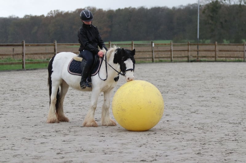 Evie 🌸 Very sweet 4-year-old mare pony – 1.26 m This beautiful young mare does not at all give the impression of being only 4 years old. She moves very nicely and effortlessly in all three gaits and jumps with great ease. She rides out comfortably without any issues: she is not spooky and behaves impeccably on the road. Additionally, Evie is bombproof – see the photos and videos with the ball – and always remains calm and reliable. In handling, she is incredibly gentle and patient. She stands perfectly still for tacking, grooming, drying… In short: a true children’s and family pony. She gets along well with other ponies and is very easy to transport. More info? 📞 +32 475 68 22 43 Videos can be viewed on our website – feel free to request the link!