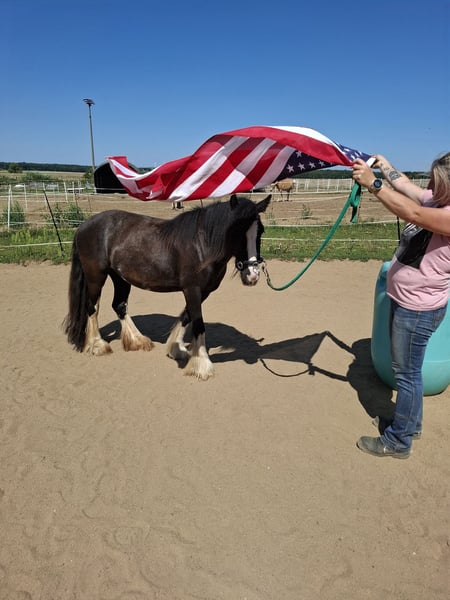 Cheyenne przyszła do mnie jako źrebak z matką. Właściwie chciałam ją wyszkolić dla siebie. Niestety, okazała się dla mnie za mała. Plan B był dla mojego wnuczka. Niestety, oboje nie mogą się ze sobą dogadać. Dla mojej hodowli nie potrzebuję kolejnego kucyka. Nadaje się do terapii jeździeckiej. Jej matka bierze udział w terapii u mnie. Z ziemi jest już gotowa. Teraz brakuje jej pewności pod jeźdźcem. Jest w treningu. Cheyenne jest bystra, wolna od egzemy, ma bardzo dobre kopyta. Jest spokojna w sobie, mimo że ma dopiero 5 lat. Chce pracować i uwielbia dzieci. Ma typową głowę kucyka, ale da się przekonać, jeśli chodzi o coś, na co akurat nie ma ochoty. Wady: szczepienia i odrobaczenia. Tutaj trzeba jeszcze trochę poćwiczyć. Poza tym jest nieustraszona i ciekawska, co bardzo ułatwia pracę. Przy poważnym zainteresowaniu chętnie prześlę więcej zdjęć i filmów. Można ją również oglądać w każdej chwili. Sprzedawana jest przez osobę prywatną. Uczyliśmy się również, jak spędzać noc w boksie. Jednak dorastała w stadzie w otwartym stajni.