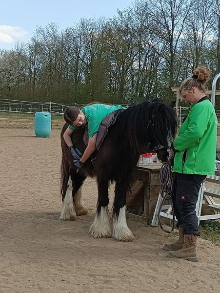Cheyenne came to me as a foal with her mother. I actually wanted to train her for myself. Unfortunately, she turned out to be too small for me. Plan B was for my grandchild. Unfortunately, they do not get along. I do not need another pony for my business. She is suitable for riding therapy. Her mother is currently in therapy with me. She is finished on the ground. Now she just needs to gain confidence under the rider. She is in training. Cheyenne is clear-headed, free from eczema, and has very good hooves. She is calm within herself, even though she is only 5 years old. She wants to work and loves children. She has the typical pony head but can be convinced if there is something she does not feel like doing at the moment. Issues: vaccinations and deworming. This still needs some training. Otherwise, she is fearless and curious, which makes the work much easier. If you are seriously interested, I can provide more photos and videos. She can also be viewed at any time. She is being sold privately. She has also been trained to stand overnight in a box. However, she was raised in a herd in a paddock.