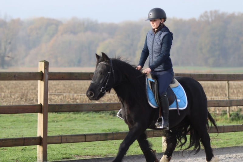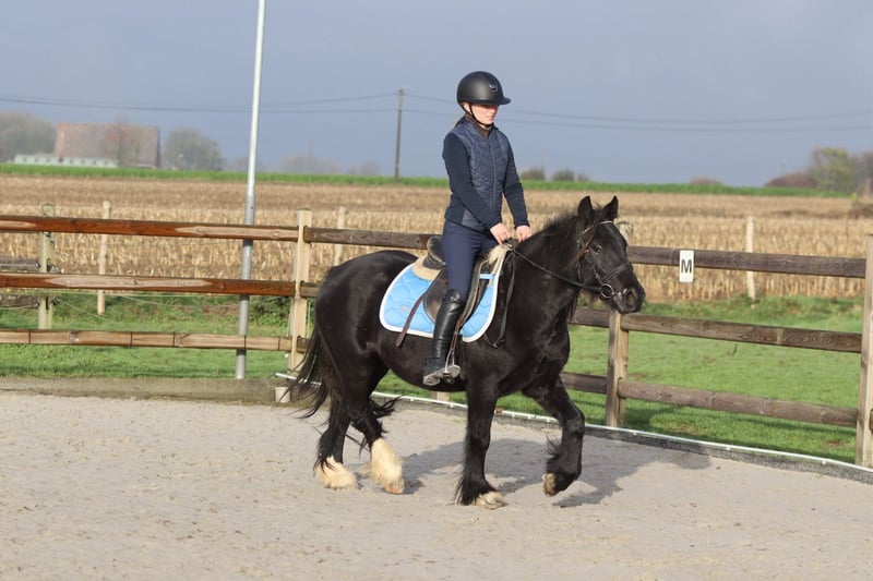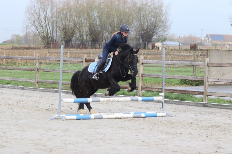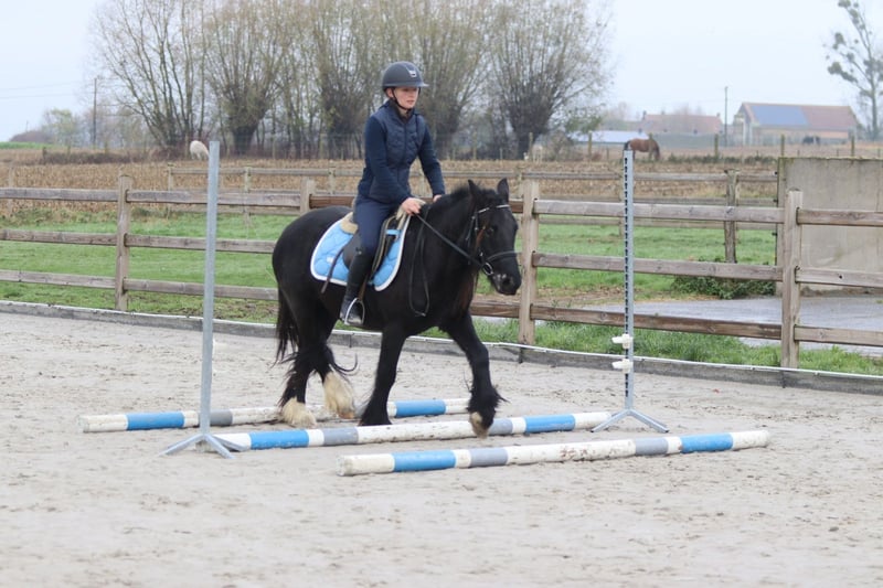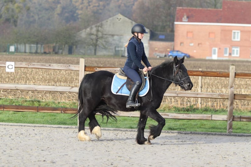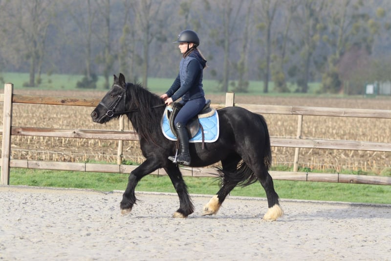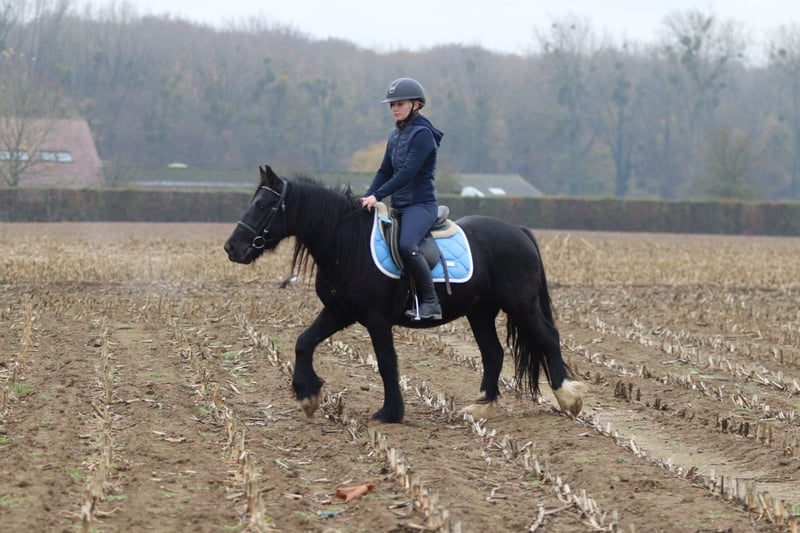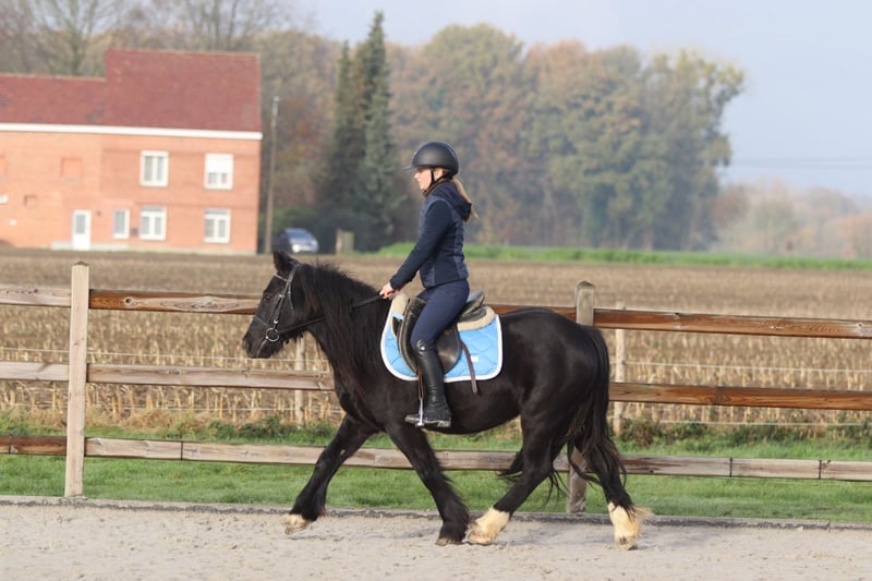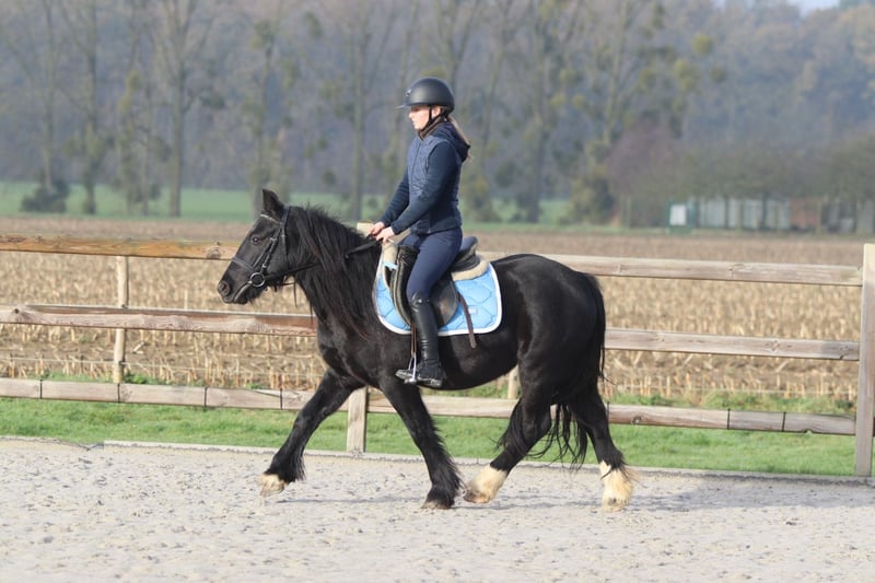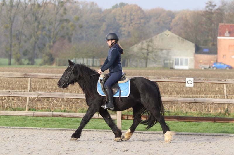 ✨ lieve Tinker merrie Kate – 5 jaar – 1m40 ✨ Mooie pikzwarte Tinker pony merrie, 5 jaar oud en 1m40 groot. Braaf en meewerkend onder het zadel — ideaal voor ruiters die op zoek zijn naar een fijne, betrouwbare pony. 🐴 • ✔️ Fijn te rijden • 🏇 Springt graag en heeft in Ierland al crosshindernissen gedaan • 🐎 Sociaal: komt goed overeen met andere pony’s • 🧼 Makkelijk met opzadelen en in de omgang 📞 Meer info: 0032 475 68 22 43 🎥 Voor video’s: vraag naar onze website
