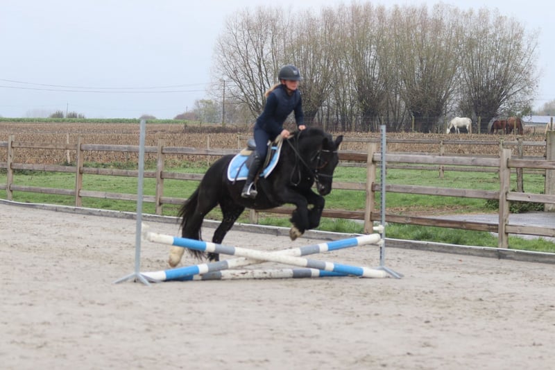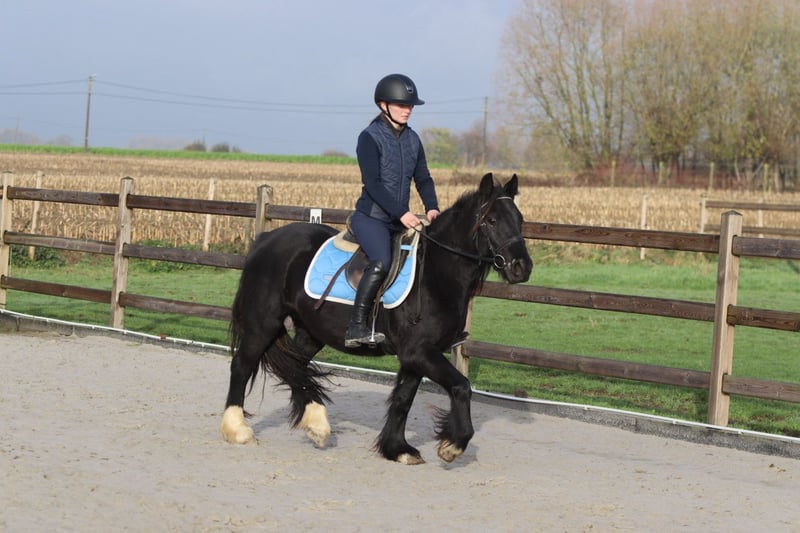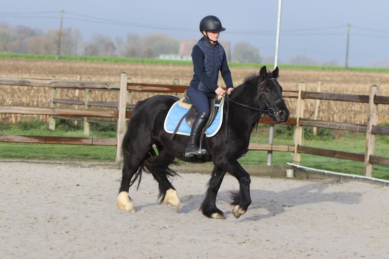 ✨ Lovely Tinker Mare Kate – 5 years old – 14.2 hh ✨ Beautiful jet-black Tinker pony mare, 5 years old and standing at 14.2 hands. Gentle and cooperative under saddle — ideal for riders seeking a friendly, reliable pony. 🐴 • ✔️ Easy to ride • 🏇 Enjoys jumping and has experience with cross-country obstacles in Ireland • 🐎 Social: gets along well with other ponies • 🧼 Easy to tack up and handle 📞 More info: +32 475 68 22 43 🎥 For videos: ask for our website