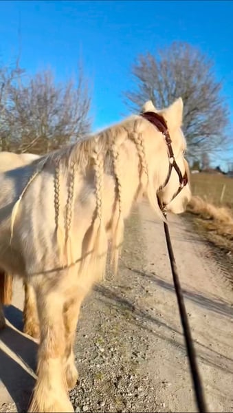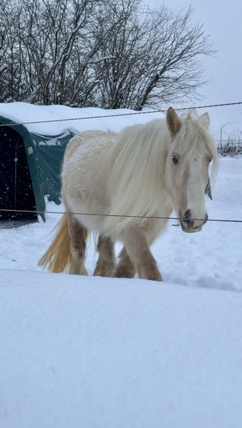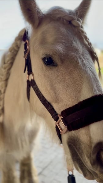 Tinkerstute, wird im April 5 Jahre Stockmaß aktuell ca. 140 cm mit holländischem Pass. Aus persönlichen Gründen sucht unsere Tinkerstute ein passendes neues Zuhause. • aktuell ca. 140 cm (noch im Wachstum) • kompakter Typ • kennt Offenstall und 24/7-Weidehaltung sowie nachts Box und tagsüber draußen • regelmäßig geimpft und entwurmt • Osteopath war im Januar erst da Sie kennt: • Longieren und Doppellonge (Roundpen & Platz) • Gelassenheitsarbeit • Spaziergänge im Gelände • Platzarbeit • Sie wurde bei der Vorbesitzerin in einem Kutsch-Ausbildungsstall ein- und zweispännig gefahren und kennt die Arbeit vor der Kutsche. Laut Vorbesitzerin wurde sie bereits im Abteilungsreitunterricht eingesetzt. Beim Hufschmied ist sie brav. Sie ist aufmerksam, intelligent und arbeitet fein mit, wenn sie klar geführt wird. Im Gelände zeigt sie sich grundsätzlich gelassen. Sie ist aktuell kein Anfänger- oder Kinderpferd. Obwohl sie von der Vorbesitzerin (laut ihrer Aussage) als Therapiepferd ausgebildet und eingesetzt wurde, sehe ich sie aktuell nicht in diesem Bereich. Sie ist sehr Menschenbezogen. In einzelnen Situationen im Handling benötigt sie einen ruhigen, erfahrenen Menschen mit klarer und konsequenter Führung. Hier arbeiten wir bereits regelmäßig mit unserem Trainer. Unser Trainer arbeitet regelmäßig mit ihr vom Boden aus zur weiteren Desensibilisierung und Muskelaufbau. Im Gelände ist er sie im Schritt auch bereits kurze Strecken ohne Sattel geritten, was sie sehr ruhig und gelassen mitmacht. Dabei war sie jeweils als einziges Pferd unterwegs. Auch neue Wege und unbekannte Strecken bereiten ihr dabei keine Probleme, sie bleibt aufmerksam und geht ruhig mit. Ein Probereiten ist aktuell aufgrund fehlenden Equipments nicht möglich. Spazierengehen, Longieren und Kennenlernen sind selbstverständlich möglich. Sie wird ausschließlich an erfahrene Menschen verkauft, die den Umgang mit einem jungen Pferd mit Ruhe und Geduld bevorzugen, da sie aufgrund ihres Alters noch weiter lernen muss. Anfragen bitte nur bei ernsthaftem Interesse, mit ein paar Infos über Pferdeerfahrung, zukünftige Haltung und Ihrem Namen. Alles andere wird nicht beantwortet.