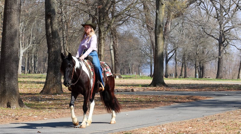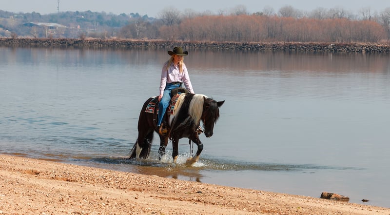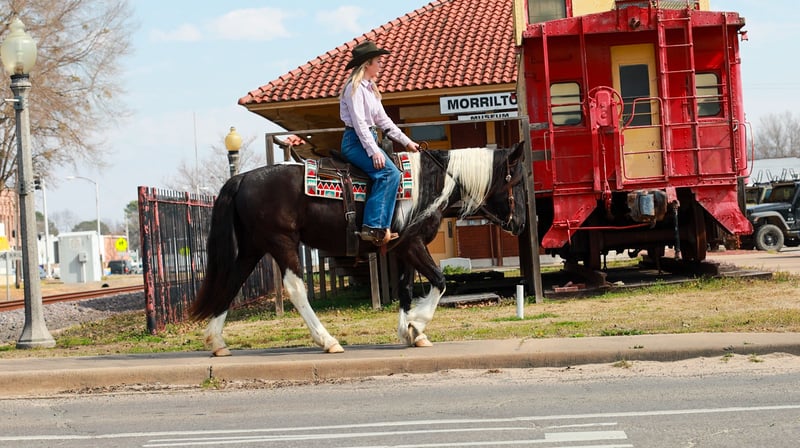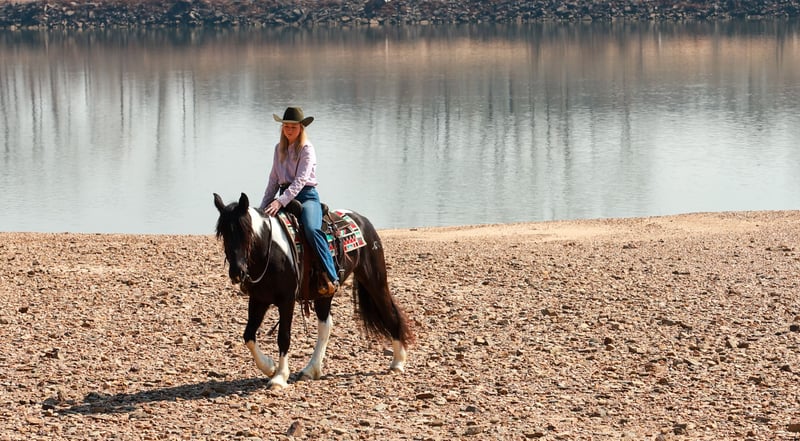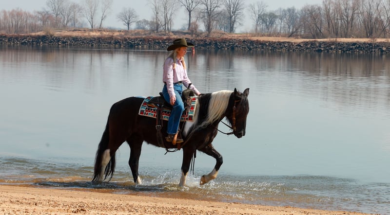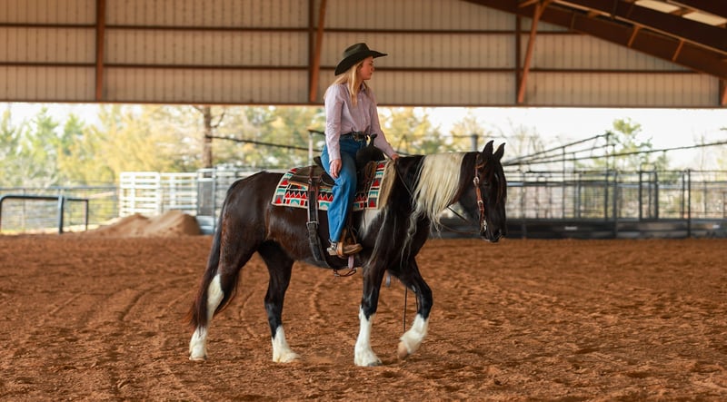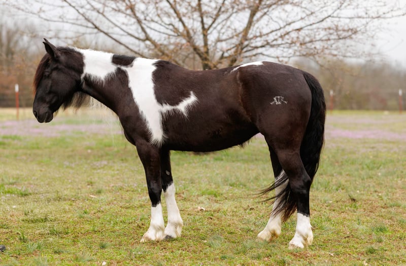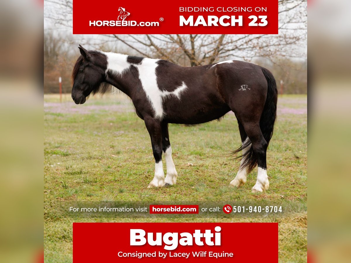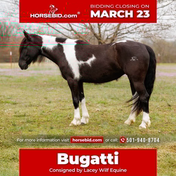 ⚜️𝓽𝓱𝓮 𝐆𝐎𝐋𝐃 𝓢𝓮𝓵𝓮𝓬𝓽⚜️ Happening now thru MONDAY | MARCH 23rd - Available EXCLUSIVELY on HorseBid's website! For more details and to register visit: www.Horsebid.com CONSIGNOR CONTACT: Lacey Wilf Equine 501-940-8704 LOCATION: Quitman, AR BREED: Gypsy Vanner Cross REGISTERED: No COLOR: Black and white HEIGHT: 14.3 hands AGE: 5 GENDER: Mare Bugatti is the kind of mare that earns her keep the moment you swing a leg over. This 5 year old Gypsy Vanner x Quarter Horse cross stands 14.3 hands and is dressed in a striking black and white coat that’s hard to miss. Beneath the eye-catching look is a mare that has already built a résumé many older horses would be proud of. Bugatti has been used extensively for real ranch work and shows up every day with a willing, get-it-done attitude. She’s the kind that understands a job and steps right into it. Doctoring sick calves, working gates, checking fences, trotting wheat pastures, or sorting pairs, Bugatti handles the day-to-day work of ranch life with confidence and grit. She works a rope well and is stout to the horn, giving you something solid to count on when the rope comes tight. Despite her size, she’s strong where it matters and stays steady in the moments when it counts. When the work is done, Bugatti is just as happy to slow things down and ease down the trail. She travels out willingly, crosses water, logs, and rough country with an open and curious mind, and takes new terrain in stride. She’s the type that enjoys having a job but also knows how to relax and simply cover ground. In the arena, Bugatti shows just how versatile she really is. She transitions seamlessly between Western and English, carrying herself comfortably in both. She’s well broke in the bridle and responsive through her ribcage, moving willingly off seat and leg cues with a soft, connected feel that makes her enjoyable to ride. Bugatti also has a fun side that makes her stand out even more. Give the rein a little wiggle and she’ll side pass over to a fence or mounting block to help you climb aboard. Tap her foot and shake the bridle rein and she’ll bow before laying down, and once she’s down she’ll work herself up into a sitting position with the posture of a polite young lady. It’s the kind of personality and trainability that makes her not only useful, but entertaining to have around. Around the barn, Bugatti keeps life simple. She’s easy to catch, groom, tack, load, and shoe, and she’s content whether she’s stalled or turned out with other horses. With her combination of ranch experience, versatility, and a little extra personality, Bugatti is the kind of mare that’s both practical and memorable all in the same breath. Watch her full Youtube video, feel free to reach out with any questions, and arrange a visit or a FaceTime with Bugatti!