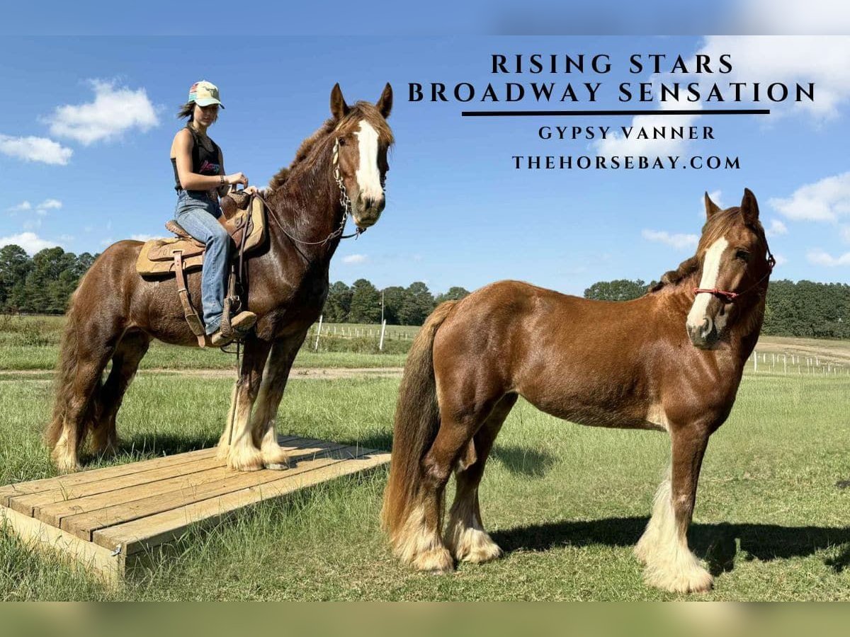 Rising Stars Broadway Sensation 5 yr old Chestnut Mare (e/e) born 8/4/20 GVHS registered Sire: SSFR BROADWAY Dam: ANERIA RS Wonderful disposition, has had 60 days under saddle and has had one healthy big foal. She has been legged up for the last 2 weeks after weaning and will continue to be ridden regularly until her sale. Loads/unloads. Stands to be groomed and bathed. Super easy keeper. Pasture turnout 24/7 and fed one flake of Alfalfa a day. She is easy to catch and stand for the farrier. Has always been bare footed and shown no need for shoes. She was an excellent mom. Easy to get in foal and foaled out with no issues. Clean ultrasound and currently open. She weaned with no issues. She has been ridden on trails, on the road and in an arena with no issues. Does well horses and by herself. Has been around dogs and cows with no issues. She stays in bottom of the pecking order in the herd. She doesn’t spook is super easy going but would always suggest more miles put on her with only 60 days riding. No health issues. PSSM1 neg. LOTS of tail and perfect feathers! Mane has had to be trimmed due to her having rubbed sections out but is still super thick! This girl has a lot to give in showing, riding and can go to any disciple, English or Western or used in a breeding program. She is ready for her new home and further education.